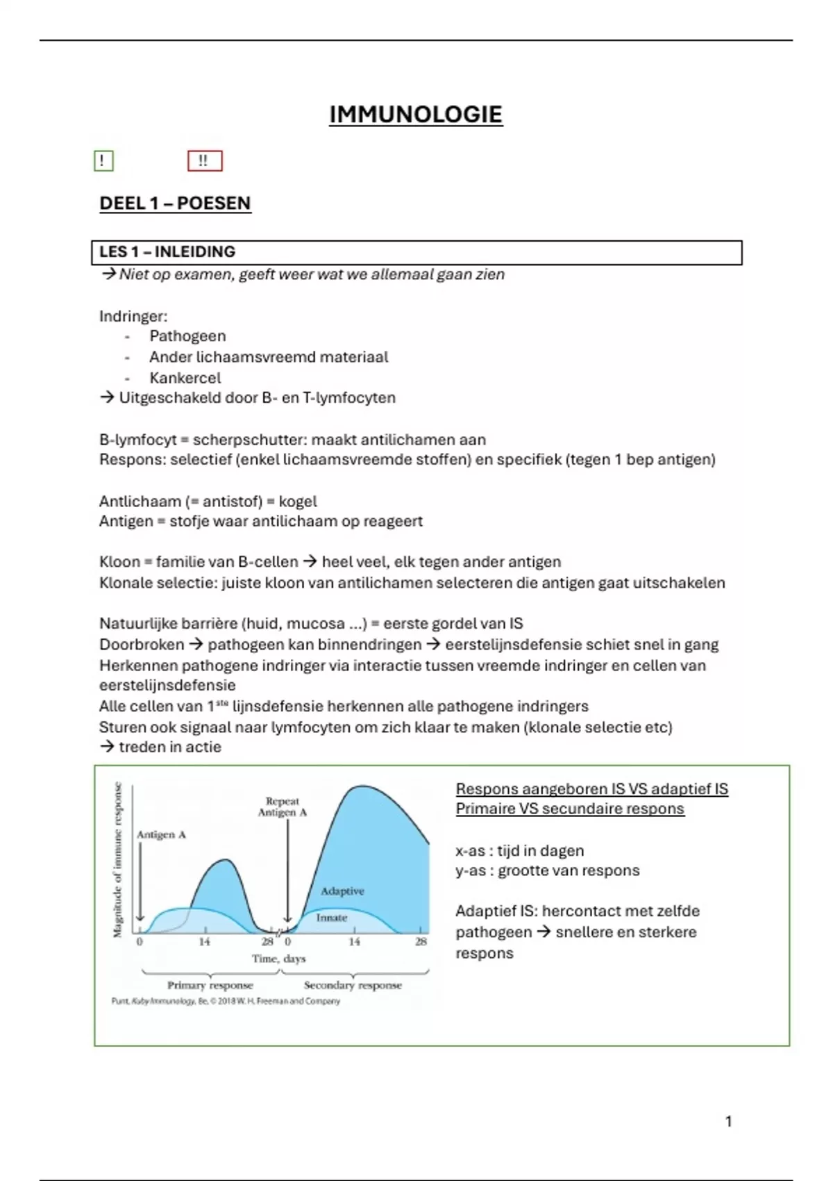 Deze samenvatting maakte ik over het vak immunologie. Heel uitgebreid, over zowel het deel van prof Poesen als het deel van prof DeSomer. Mooi gestructureerd en aangeduid welke slides de proffen belangrijk vinden (zoals gezegd in de les en aangeduid op de slides).