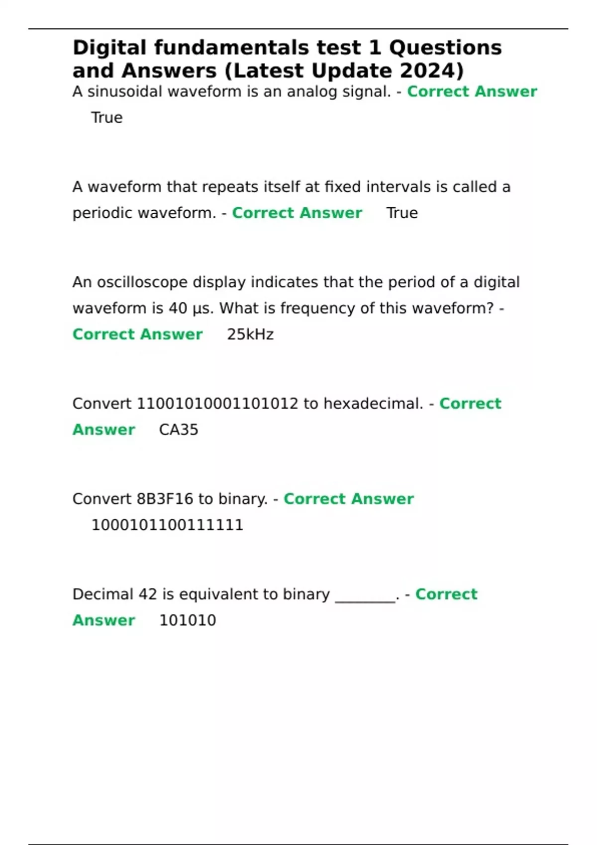 , Digital fundamentals test 1 Questions