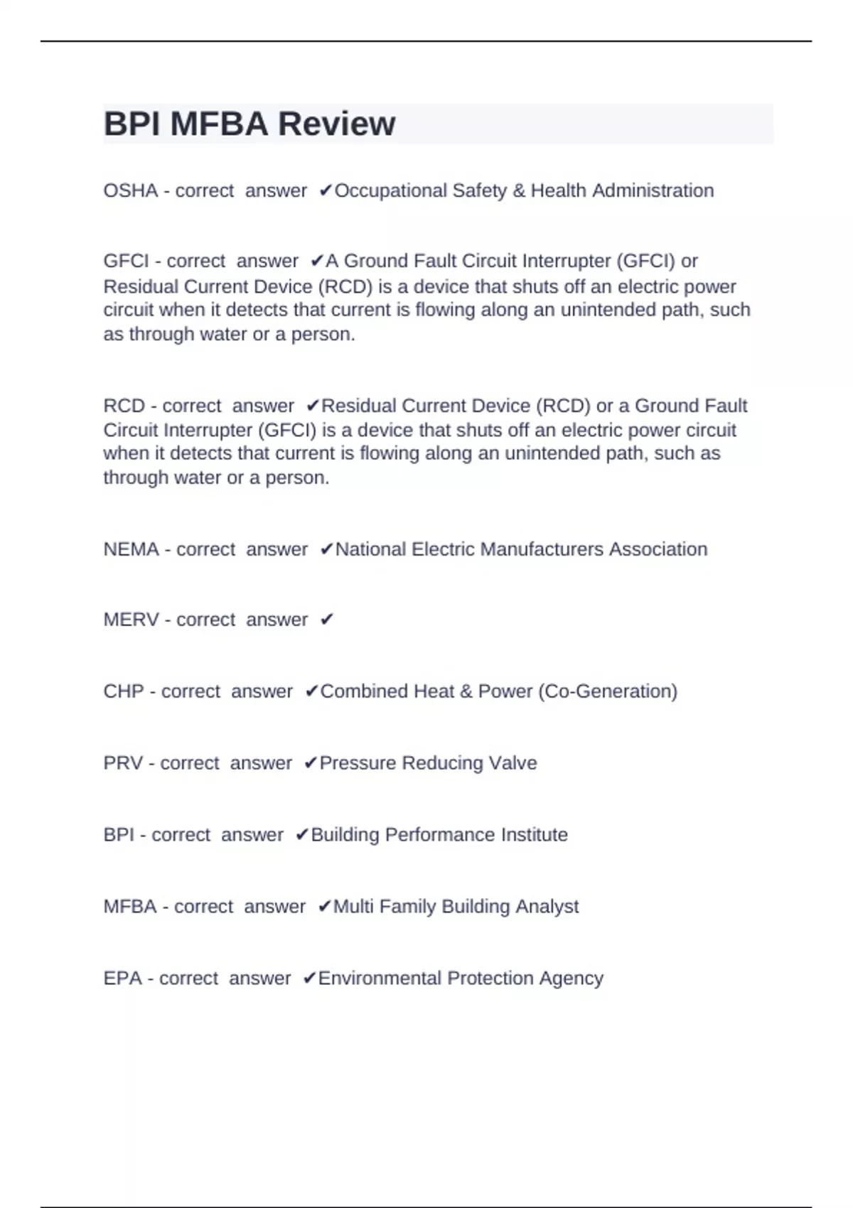 BPI - correct answer ✔Building Performance Institute