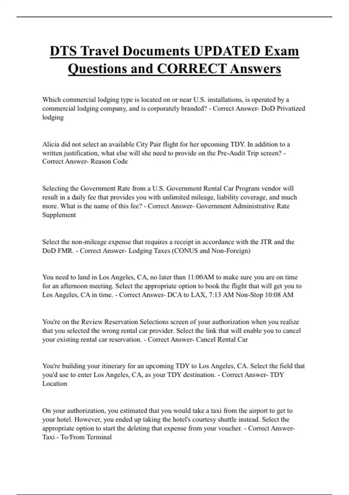 Questions and CORRECT Answers