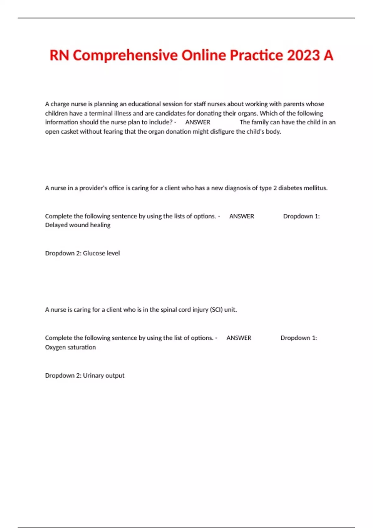 likely experiencing, 2 actions the nurse should take to address that condition, and 2 parameters the
