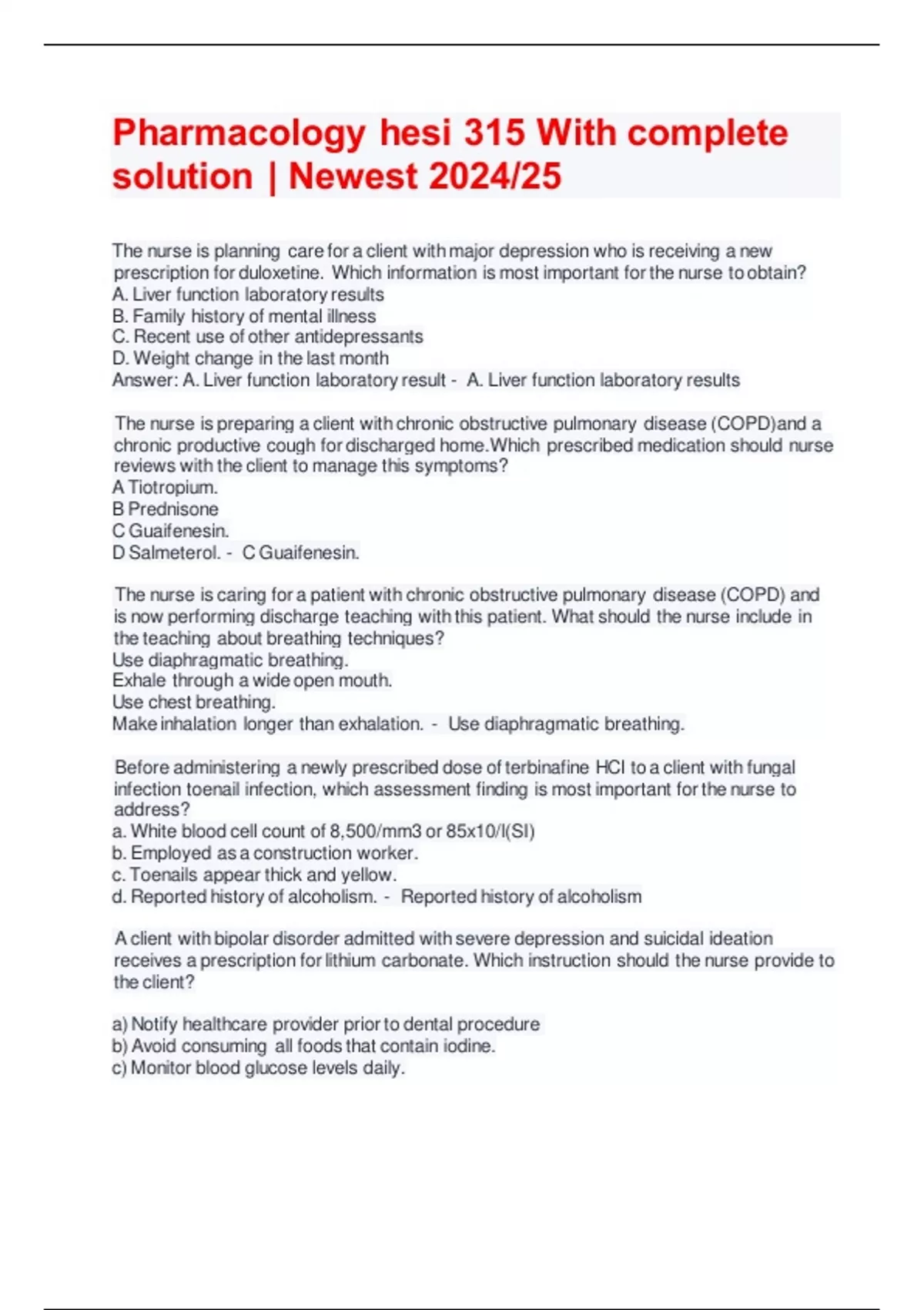 Pharmacology hesi 315 With complete solution | Newest 2024/25