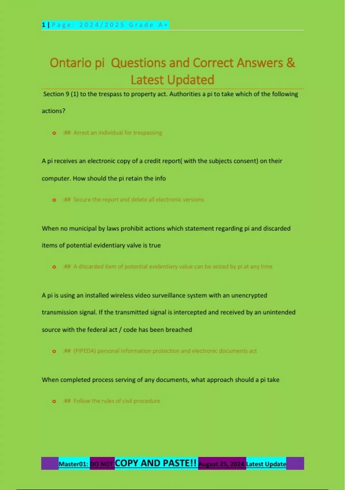 Ontario pi Questions and Correct Answers &