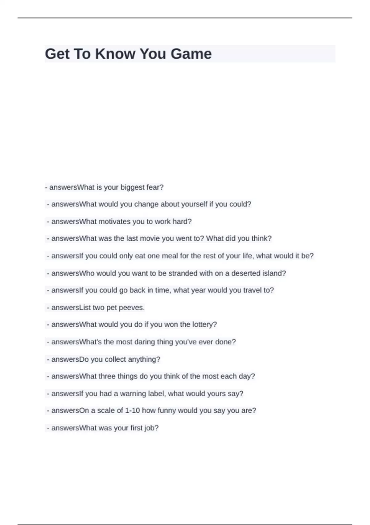Get To Know You Game