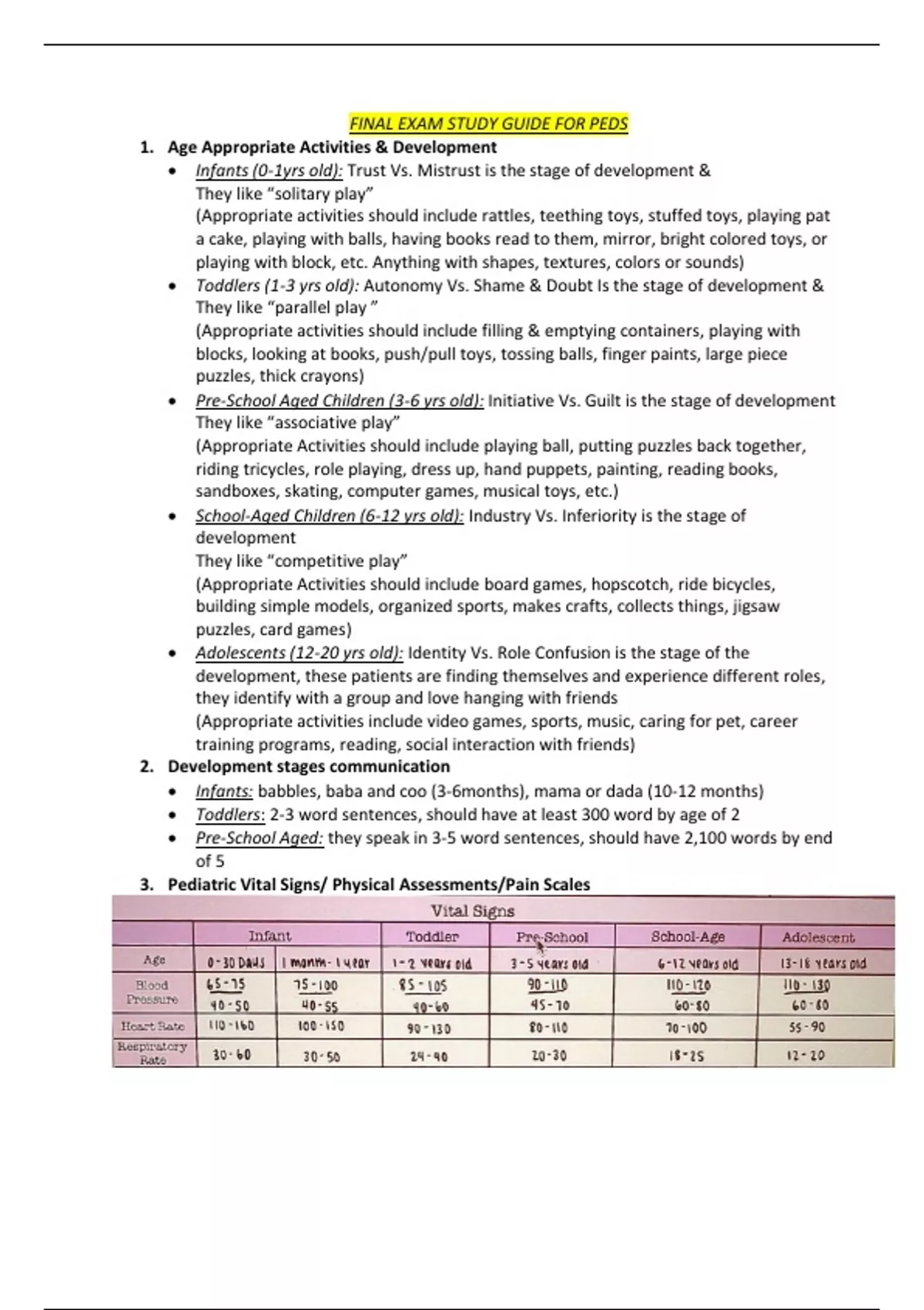 3. Pediatric Vital Signs/ Physical Assessments/Pain Scales