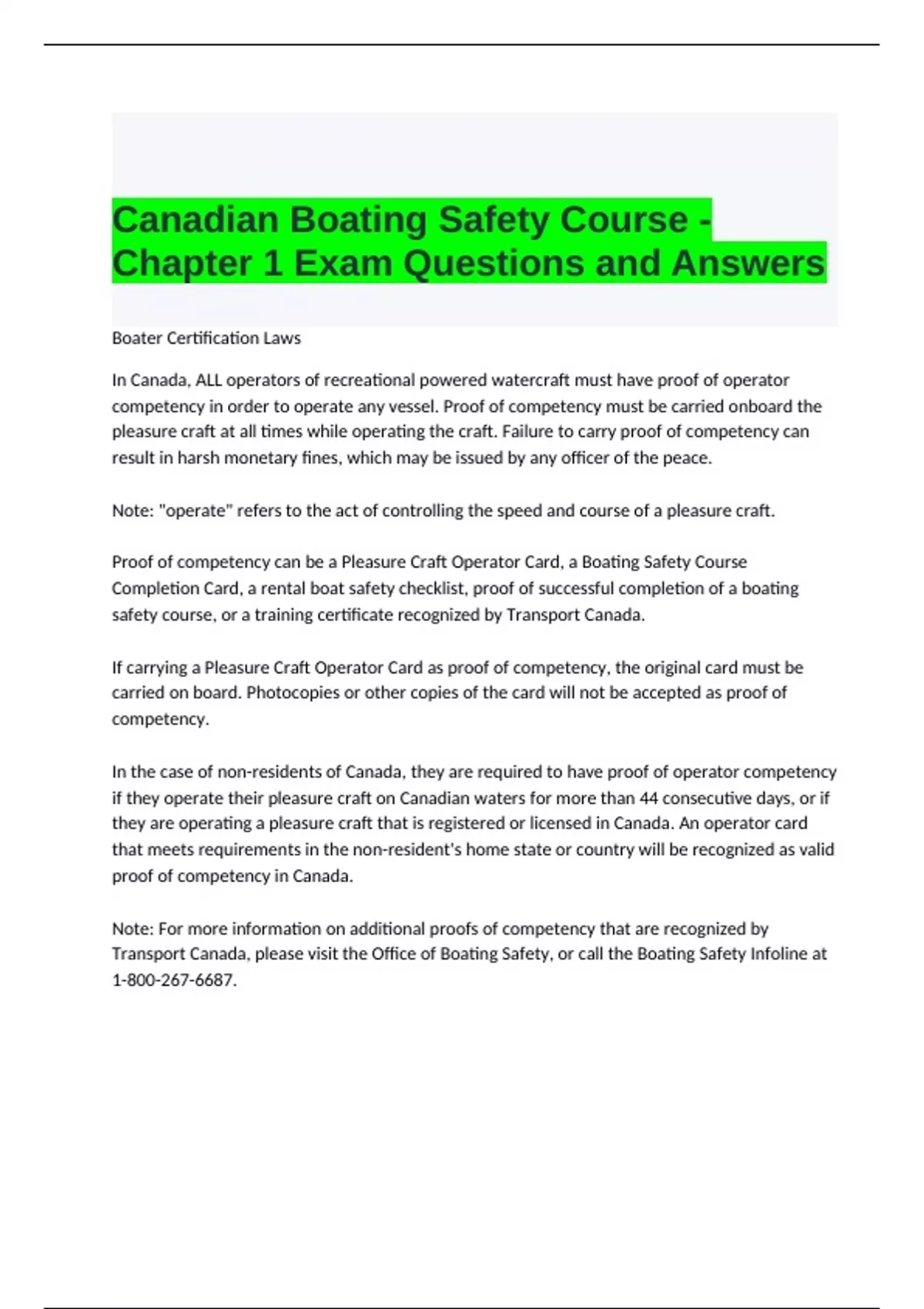Canadian Boating Safety Course - Chapter 1 Exam Questions and Answers
