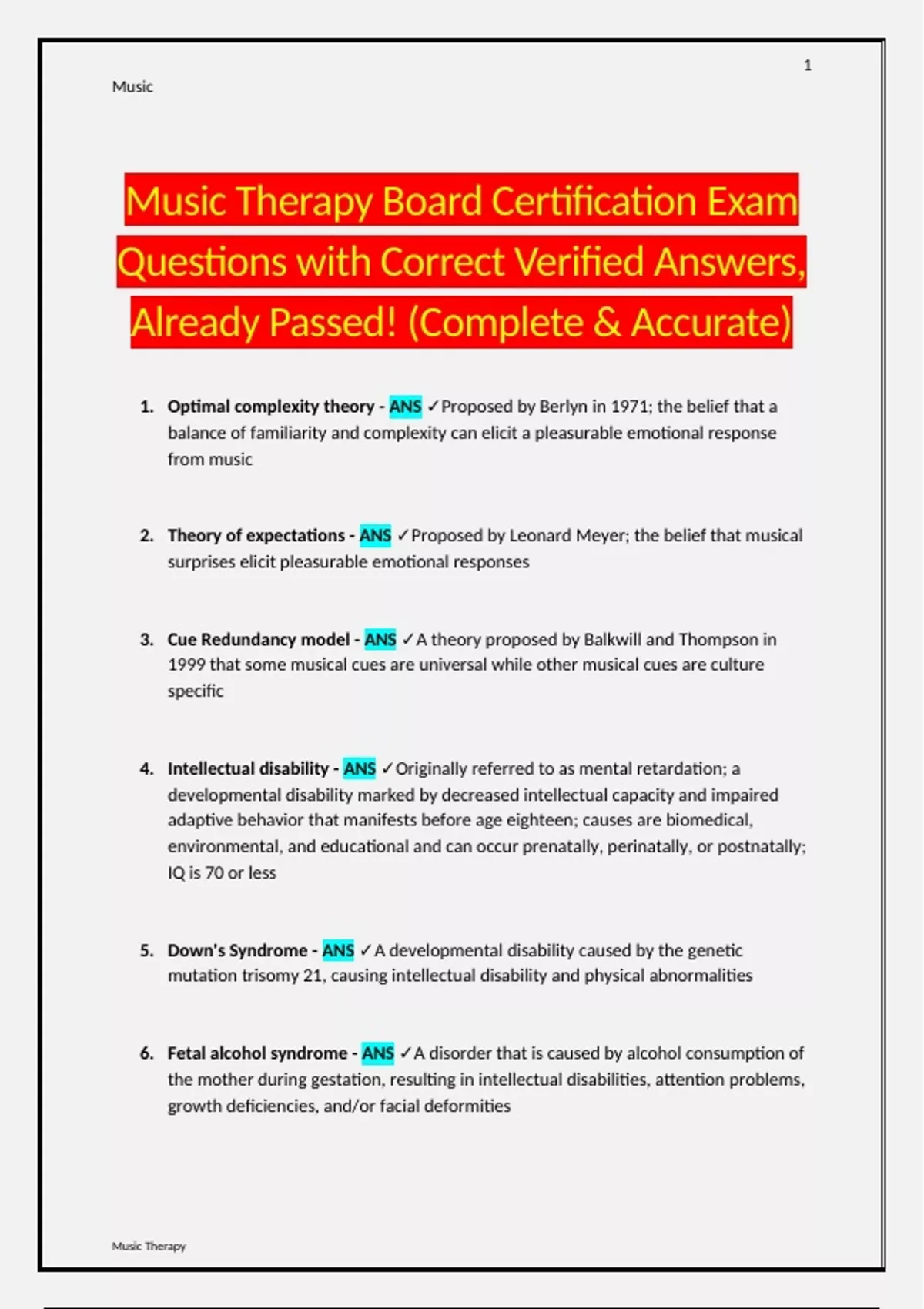 Music Therapy Board Certification Exam