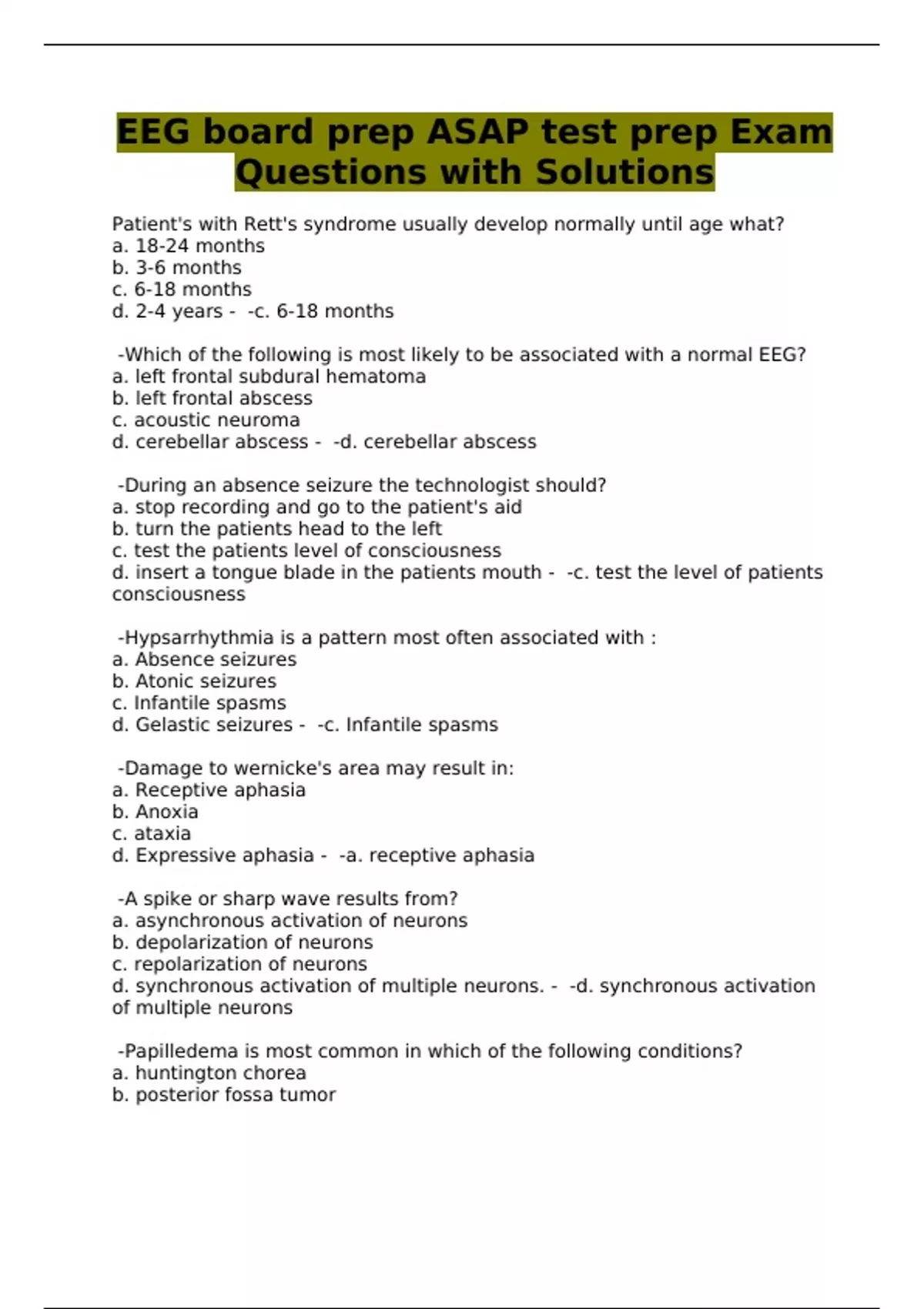 EEG board prep ASAP test prep Exam Questions with Solutions