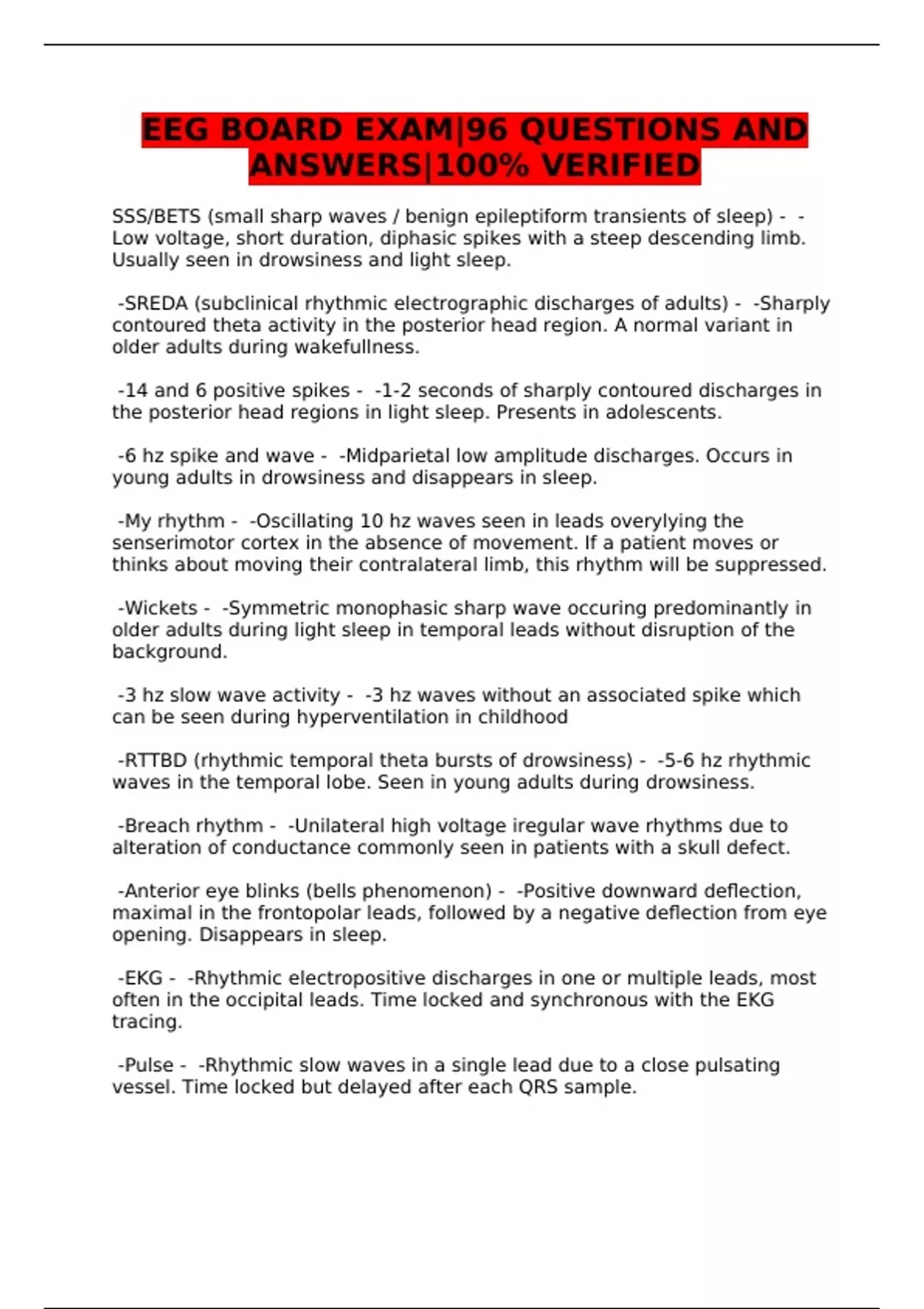 EEG BOARD EXAM|96 QUESTIONS AND ANSWERS|100% VERIFIED