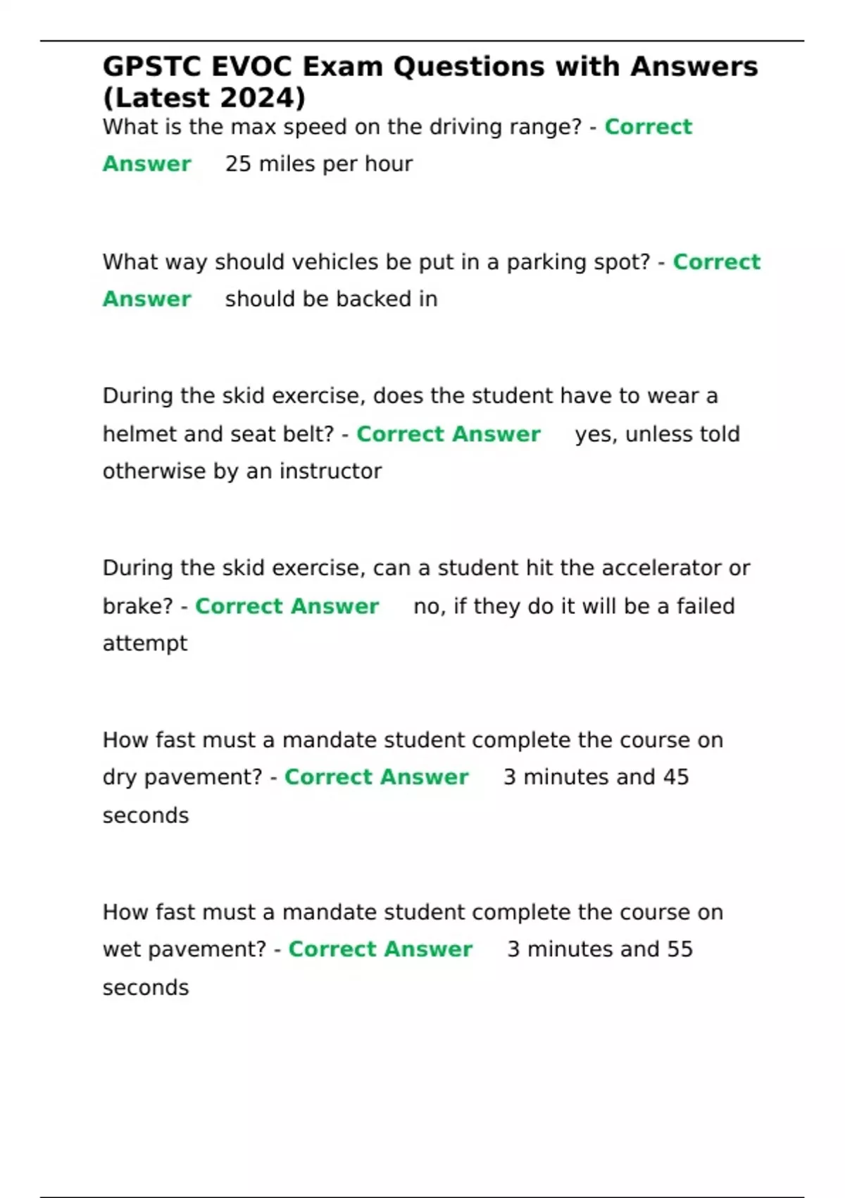 GPSTC EVOC Exam Questions with Answers (Latest 2024)