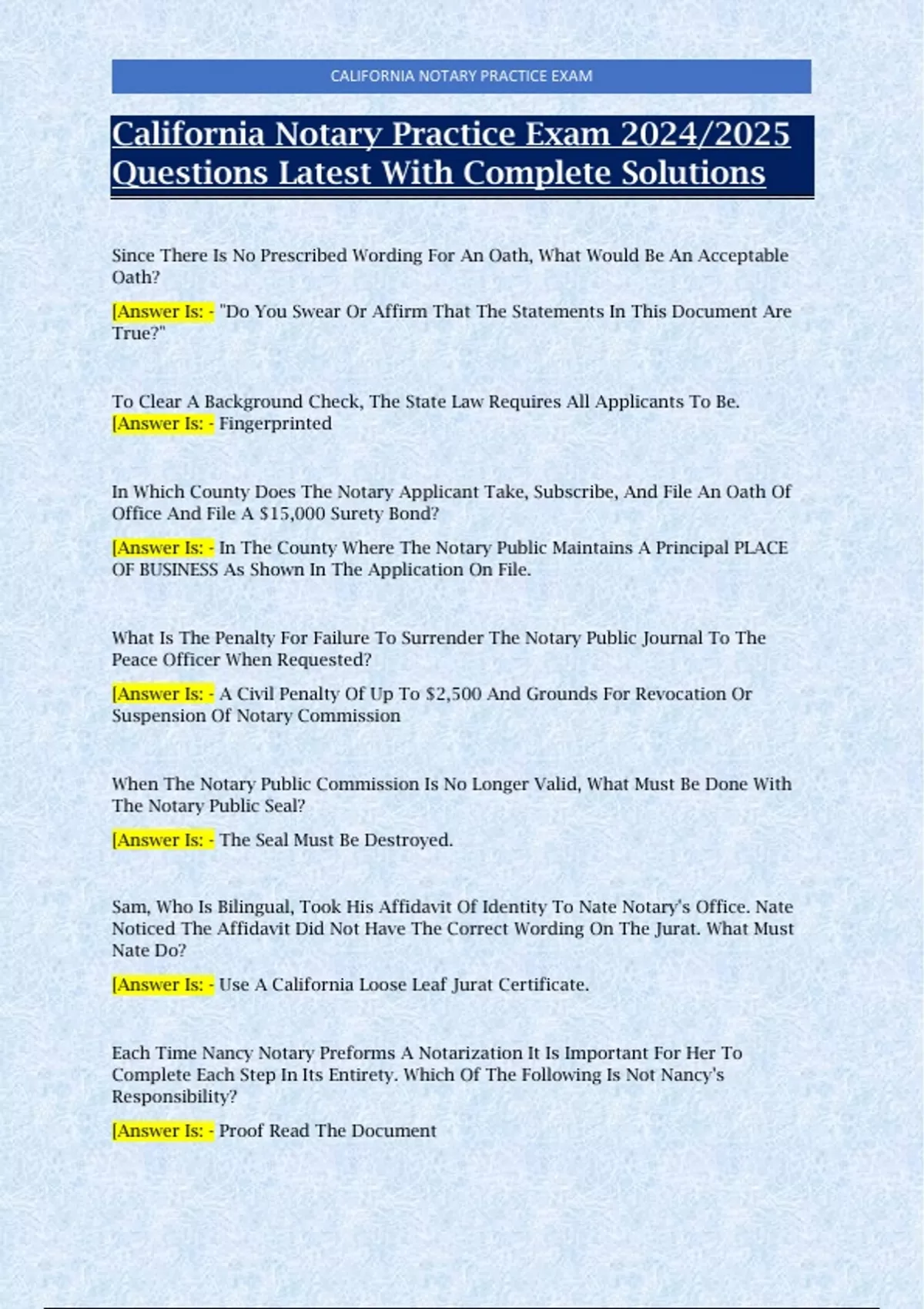 , CALIFORNIA NOTARY PRACTICE EXAM