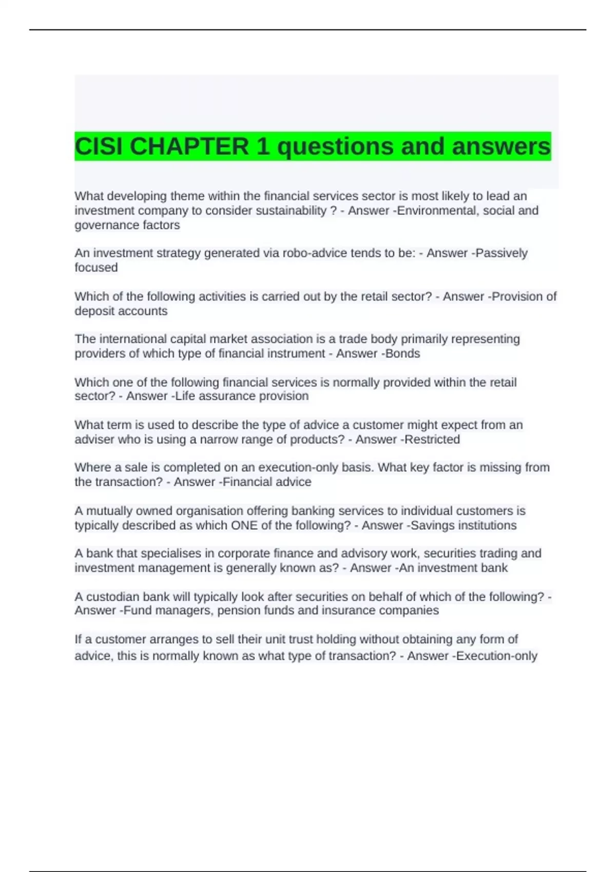 CISI CHAPTER 1 questions and answers