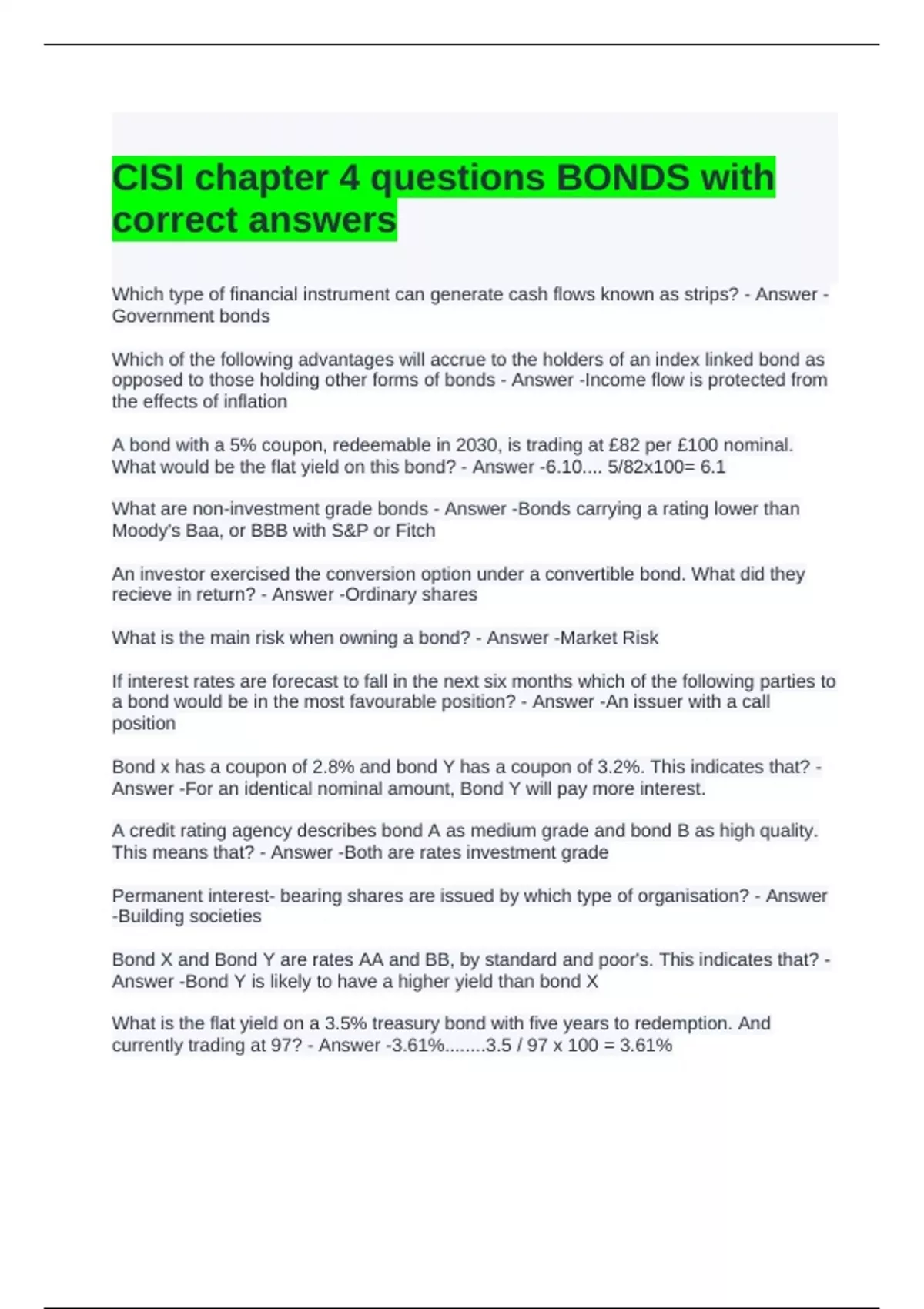CISI chapter 4 questions BONDS with correct answers