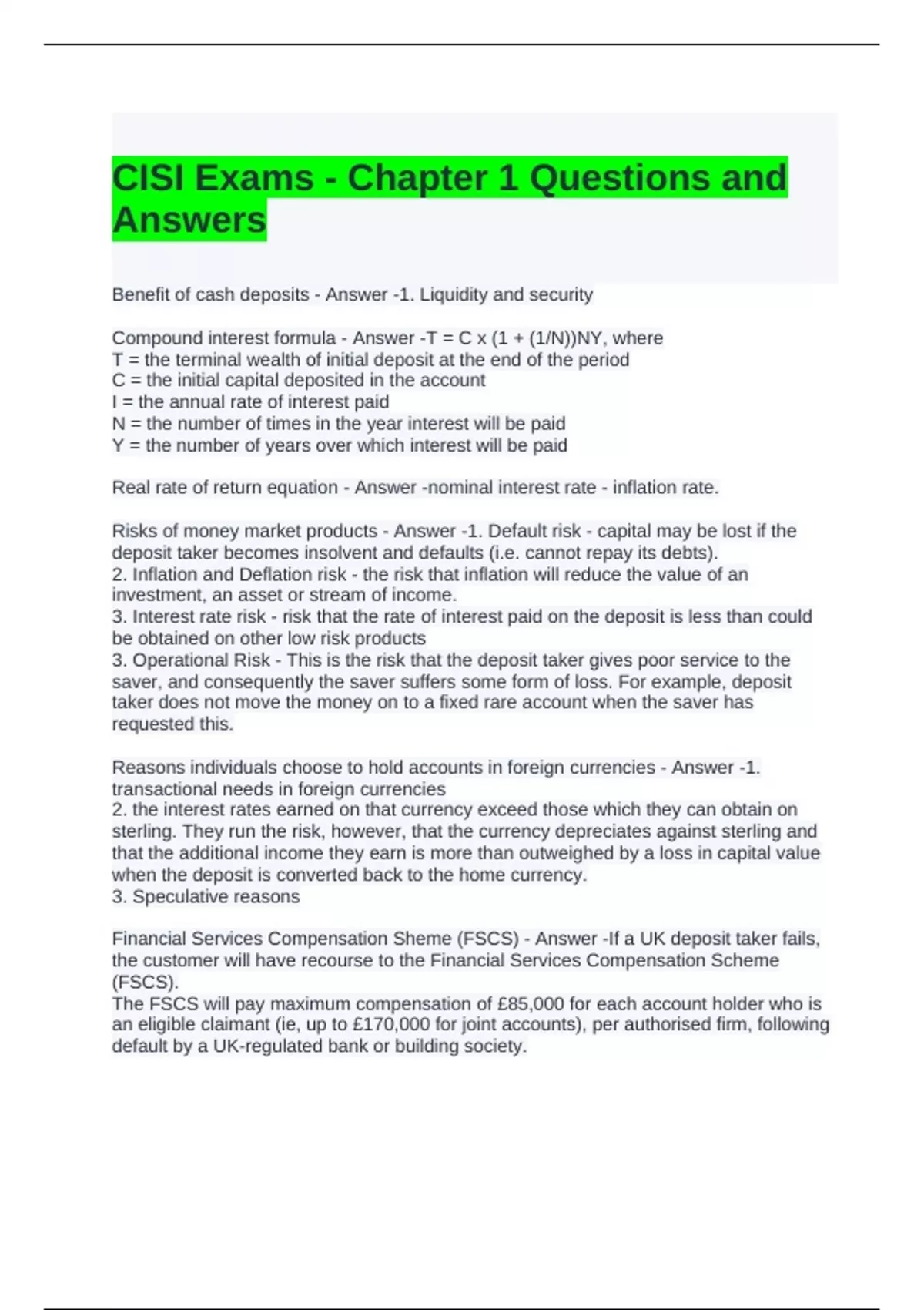 Financial Services Compensation Sheme (FSCS) - Answer -If a UK deposit taker fails,