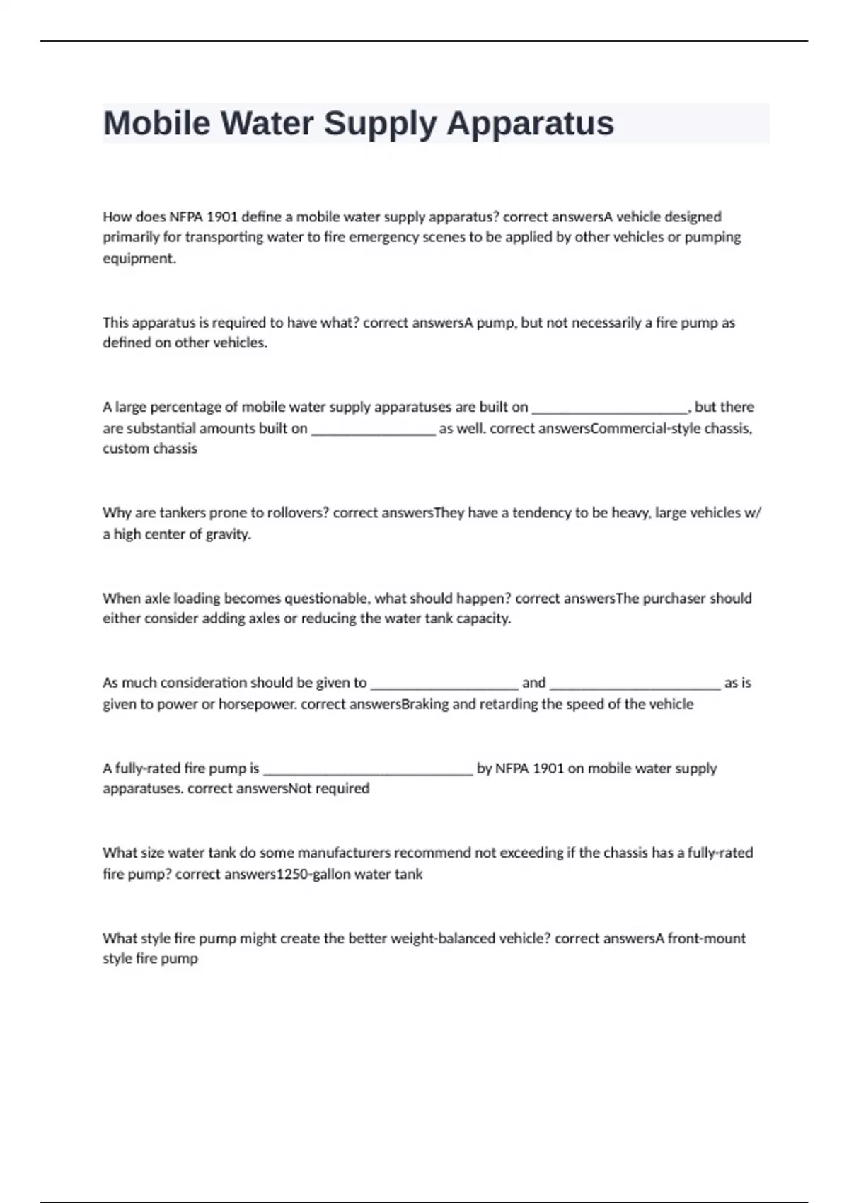 How does NFPA 1901 define a mobile water supply apparatus? correct answersA vehicle designed