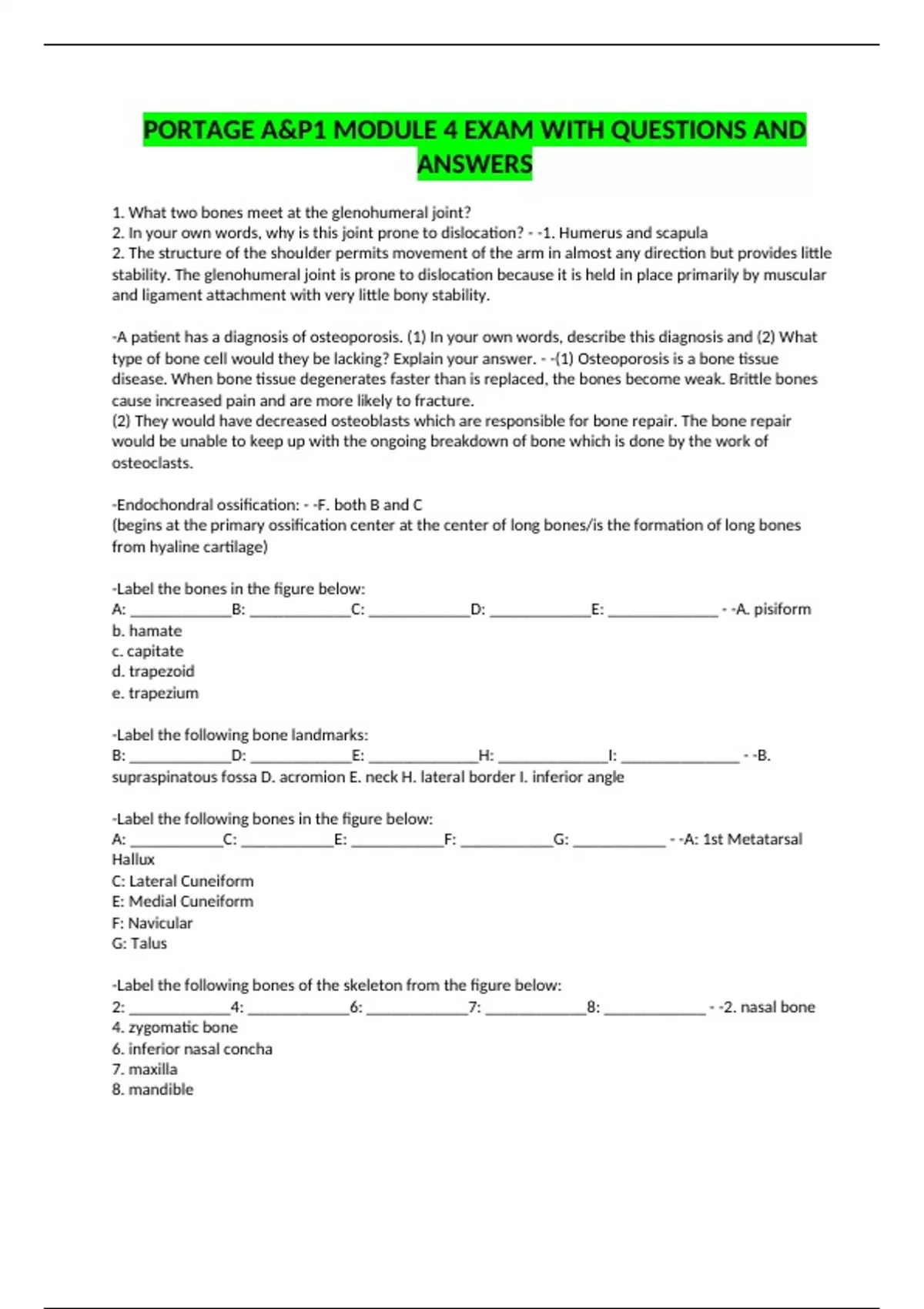 -Label the following bone landmarks: