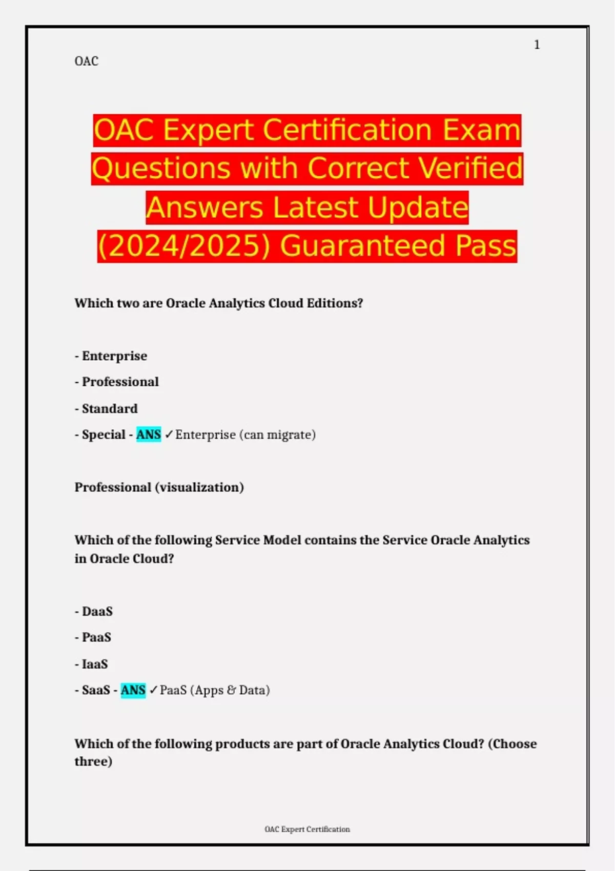 OAC Expert Certification Exam Questions with Correct Verified Answers Latest Update (2024/2025) Guaranteed Pass