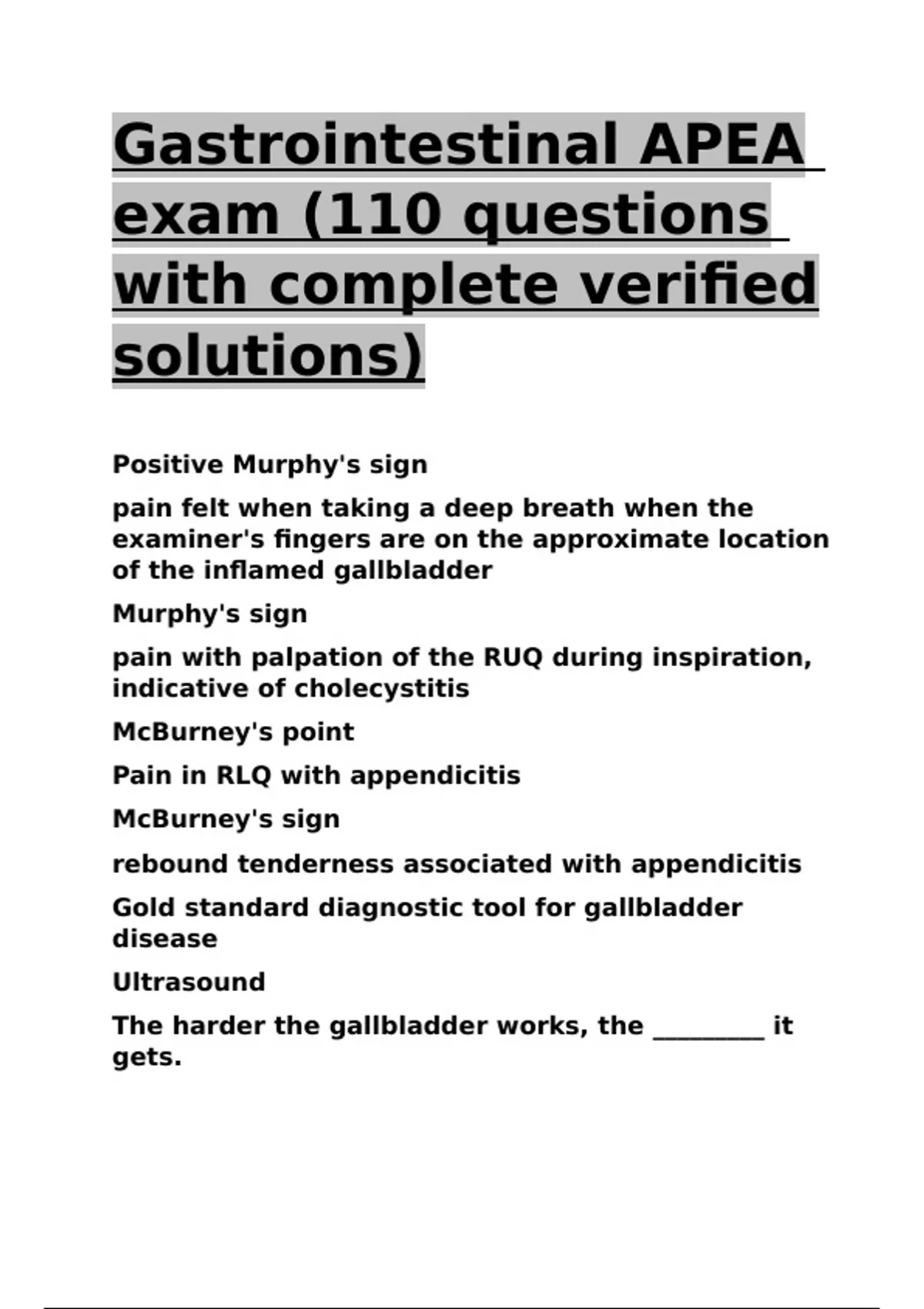 Gastrointestinal APEA exam (110 questions with complete verified solutions)