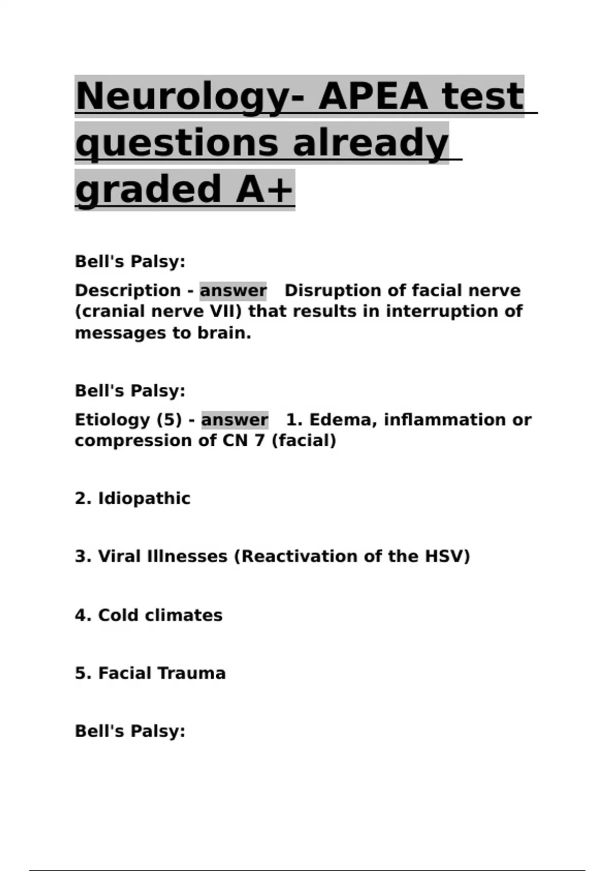 Bell's Palsy: SX (lots) - answer - Symptoms begin