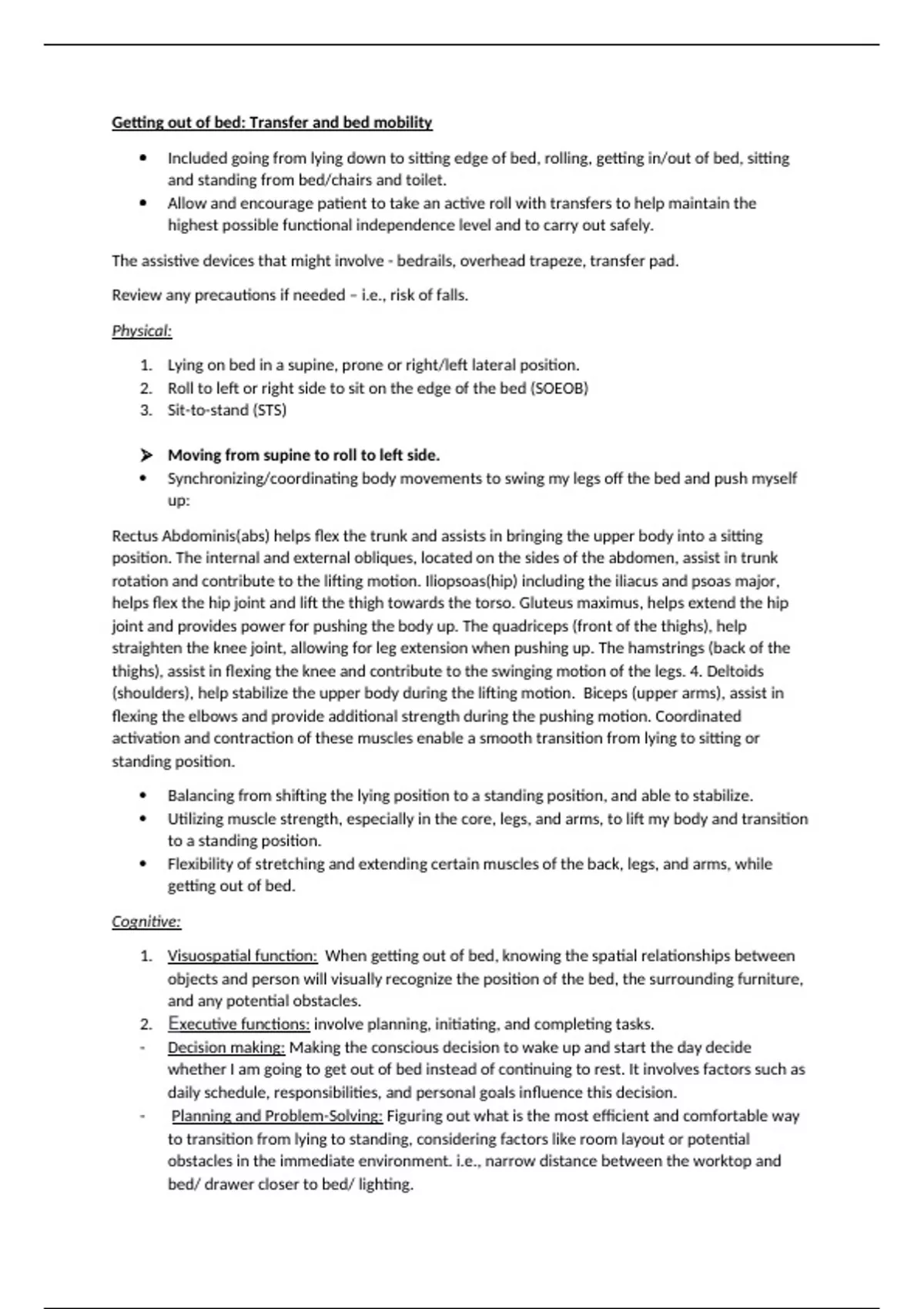Included going from lying down to sitting edge of bed, rolling, getting in/out of bed, sitting