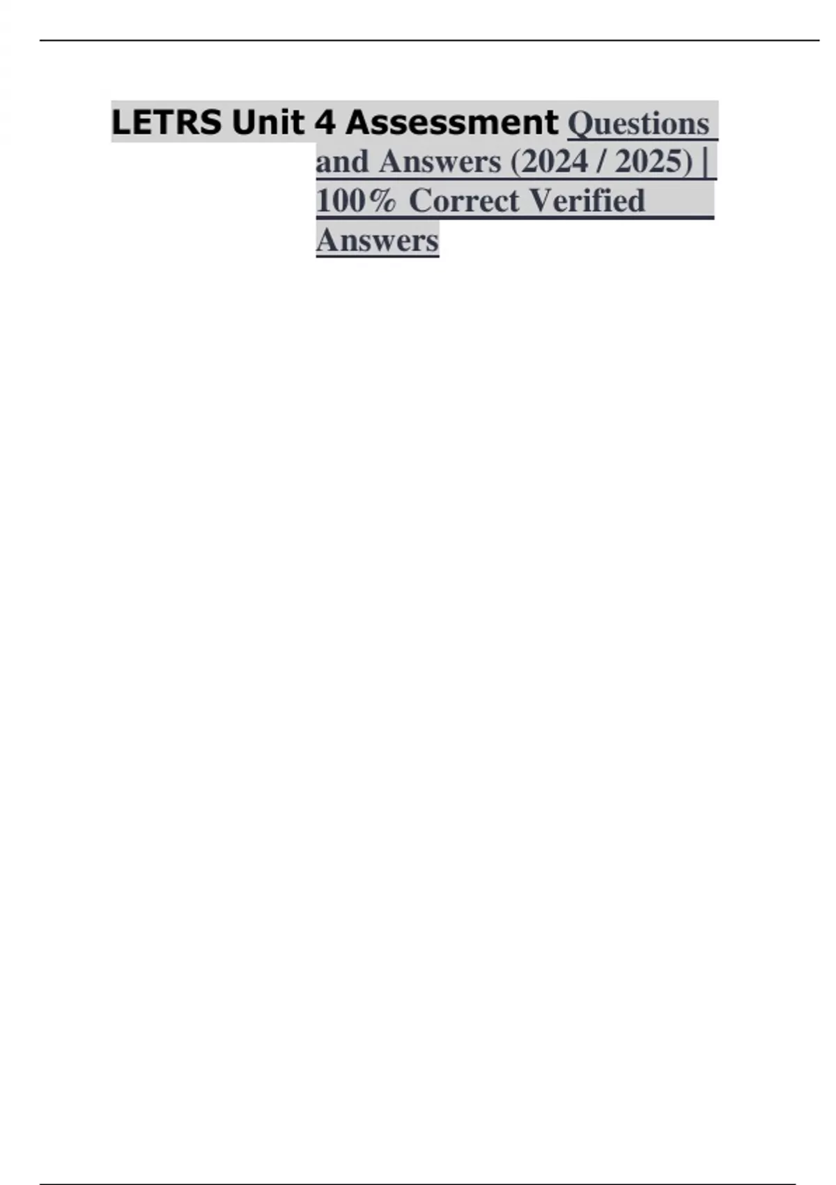 LETRS Unit 4 Assessment Questions and Answers (2024 / 2025) | 100% Correct Verified Answers LETRS Unit 4 Assessment Questions and Answers (2024 / 2025) | 100% Correct Verified Answers LETRS Unit 4 Assessment Questions and Answers (2024 / 2025) | 100% Correct Verified Answers