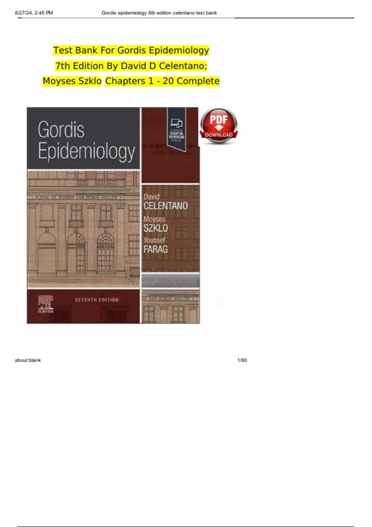 , 8/27/24, 2:45 PM Gordis epidemiology 6th edition celentano test bank