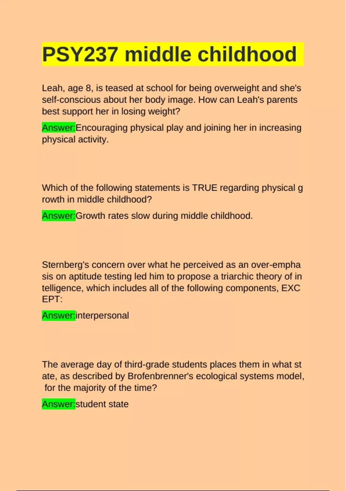 PSY237 Middle Childhood | Complete Solutions. PSY237 Middle Childhood | Complete Solutions.
