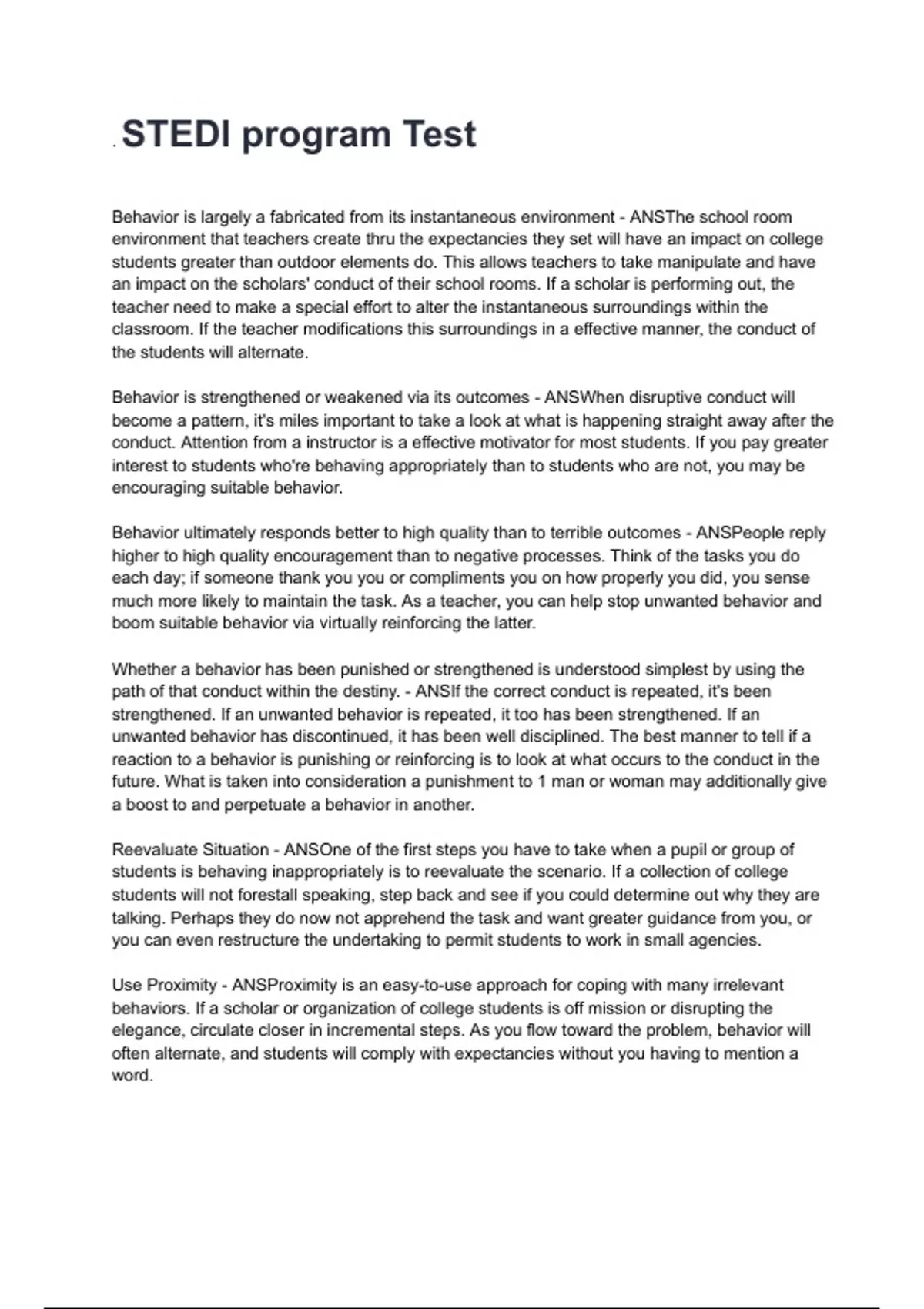 Behavior is strengthened or weakened via its outcomes - ANSWhen disruptive conduct will