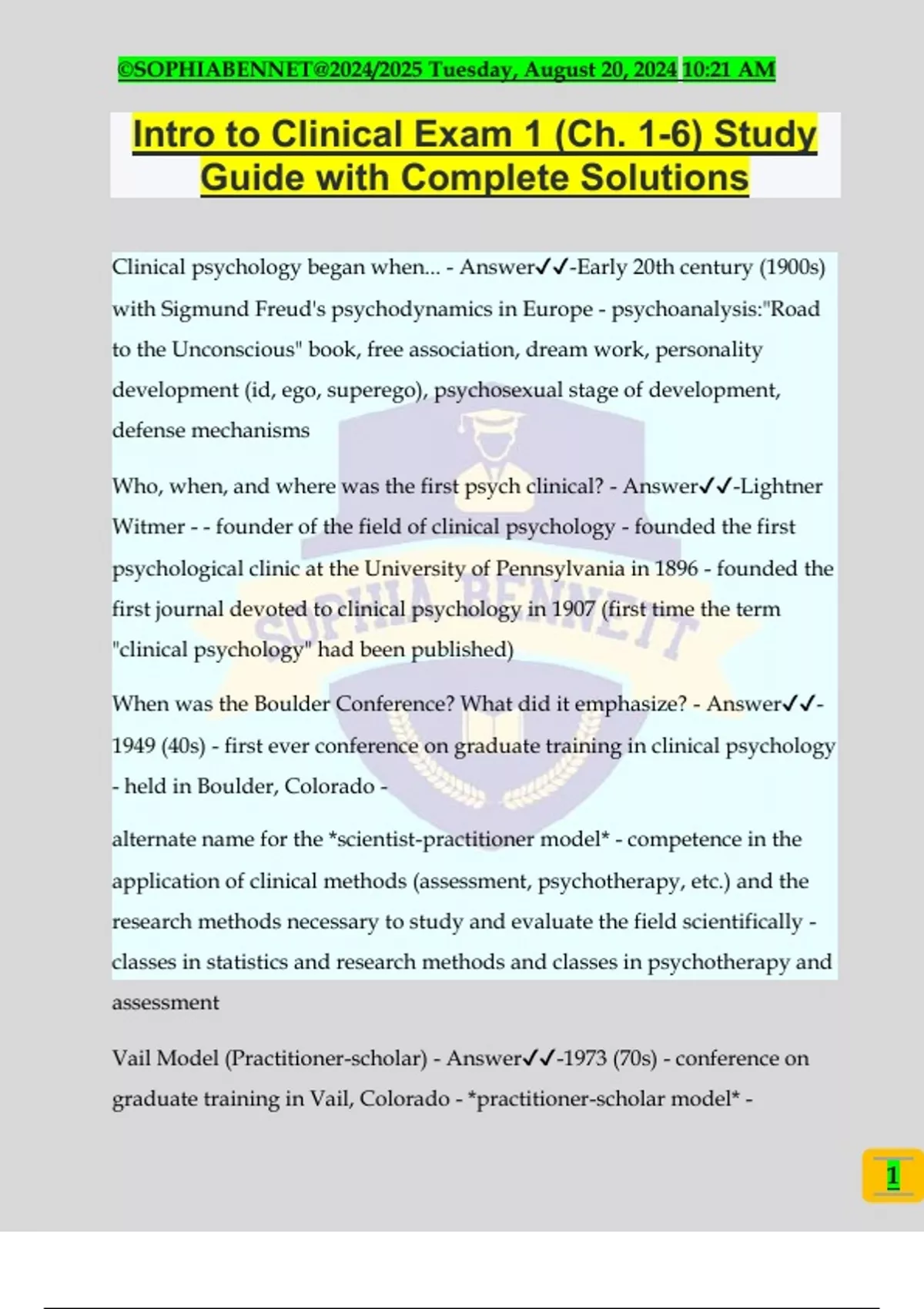 Clinical psychology began when... - Answer✔️✔️-Early 20th century (1900s)