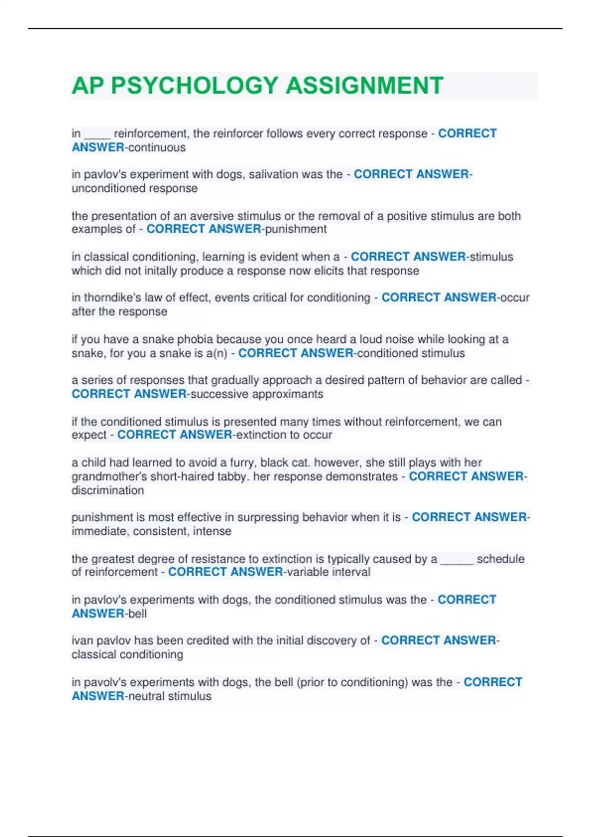 Exam (elaborations) AP PSYCHOLOGY ASSIGNMENT