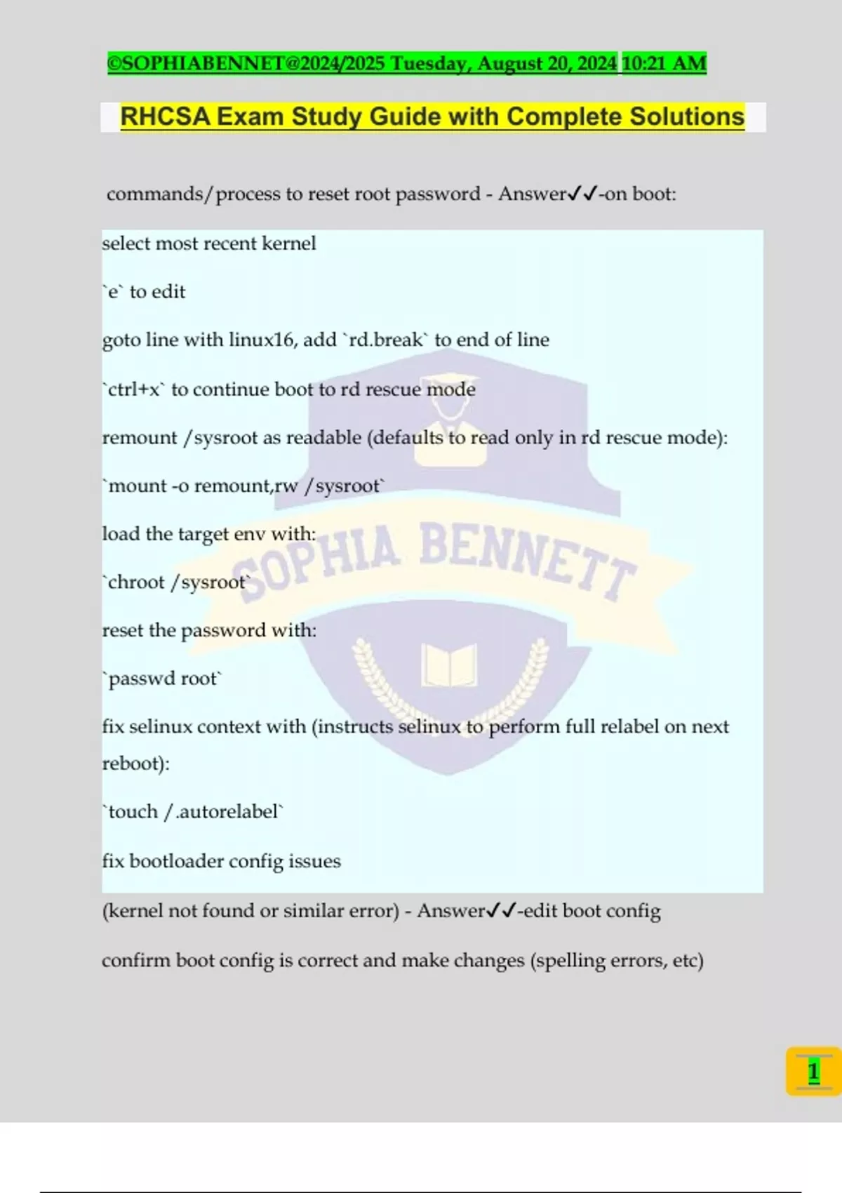 RHCSA Exam Study Guide with Complete Solutions