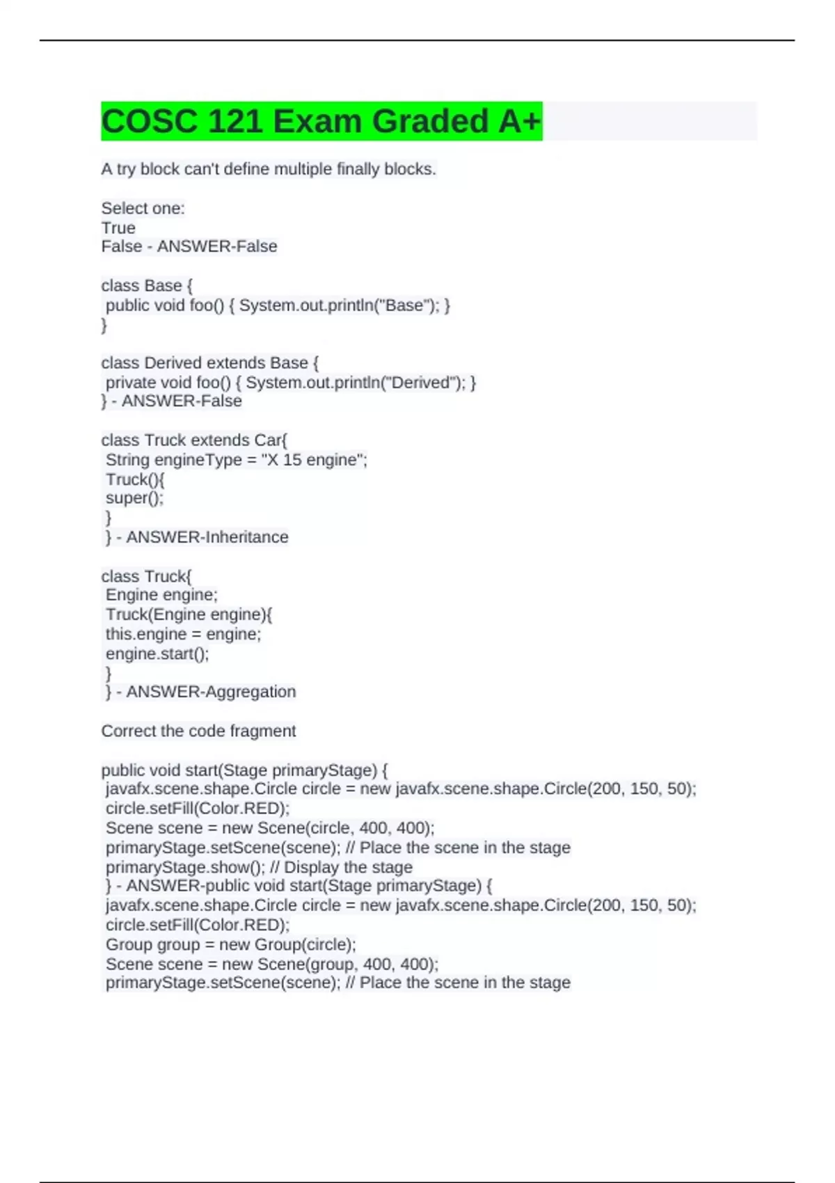 COSC 121 Exam Graded A+