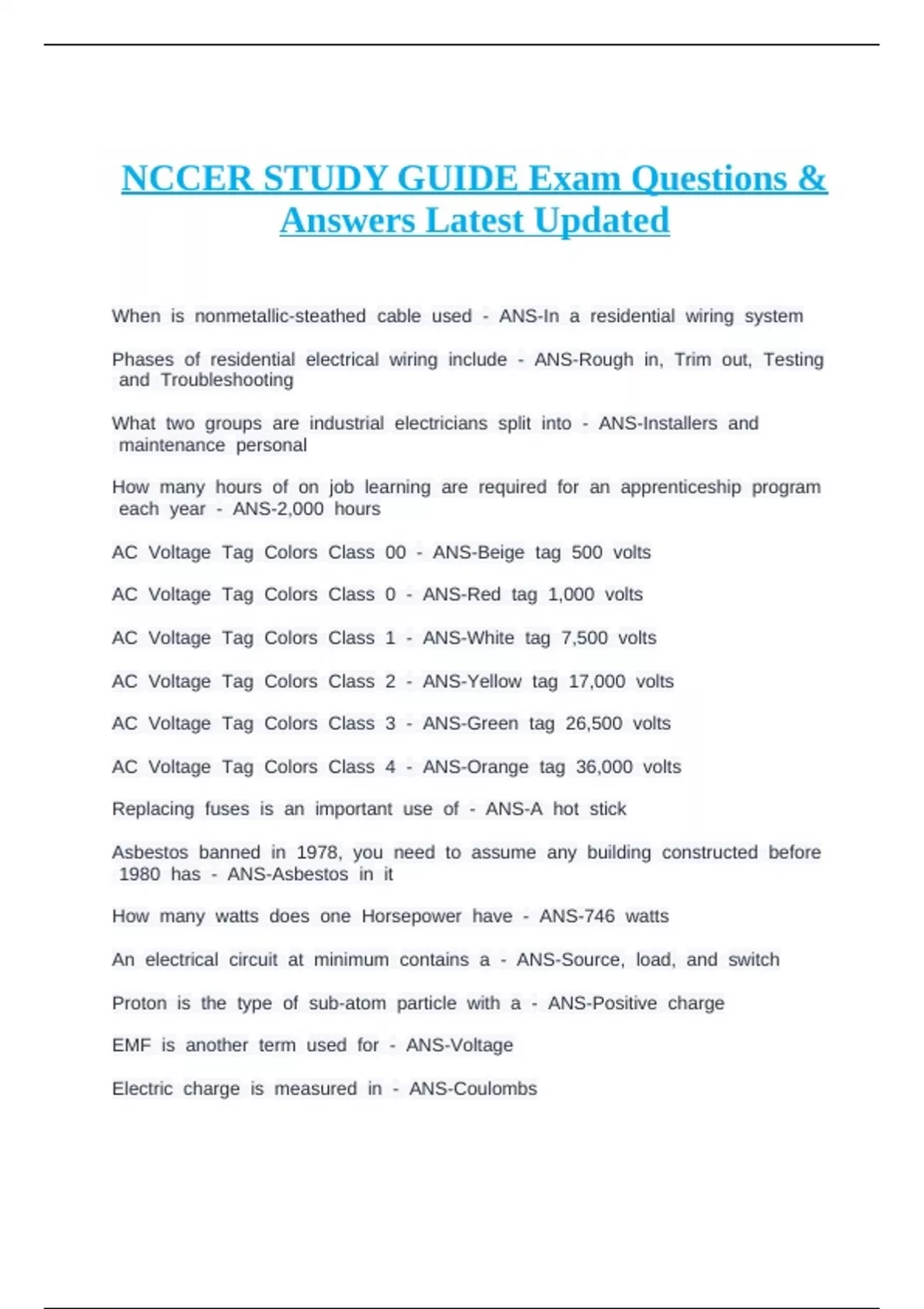 NCCER STUDY GUIDE Exam Questions & Answers Latest Updated.
