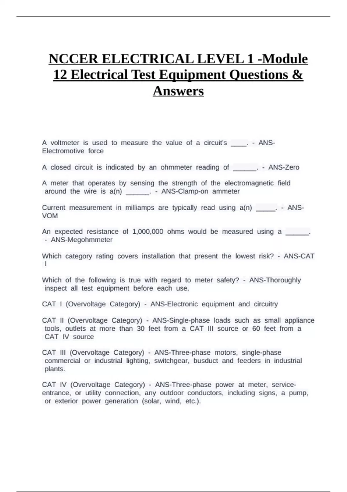 12 Electrical Test Equipment Questions &