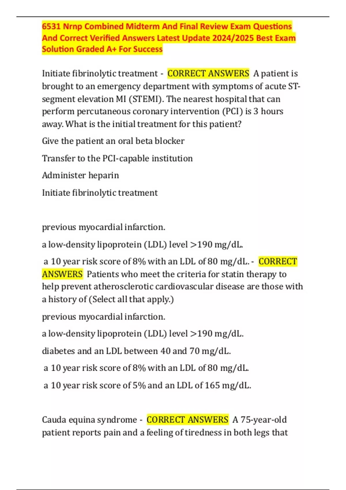 6531 Nrnp Combined Midterm And Final Review Exam Questions And Correct Verified Answers Latest Update 2024/2025 Best Exam Solution Graded A+ For Success