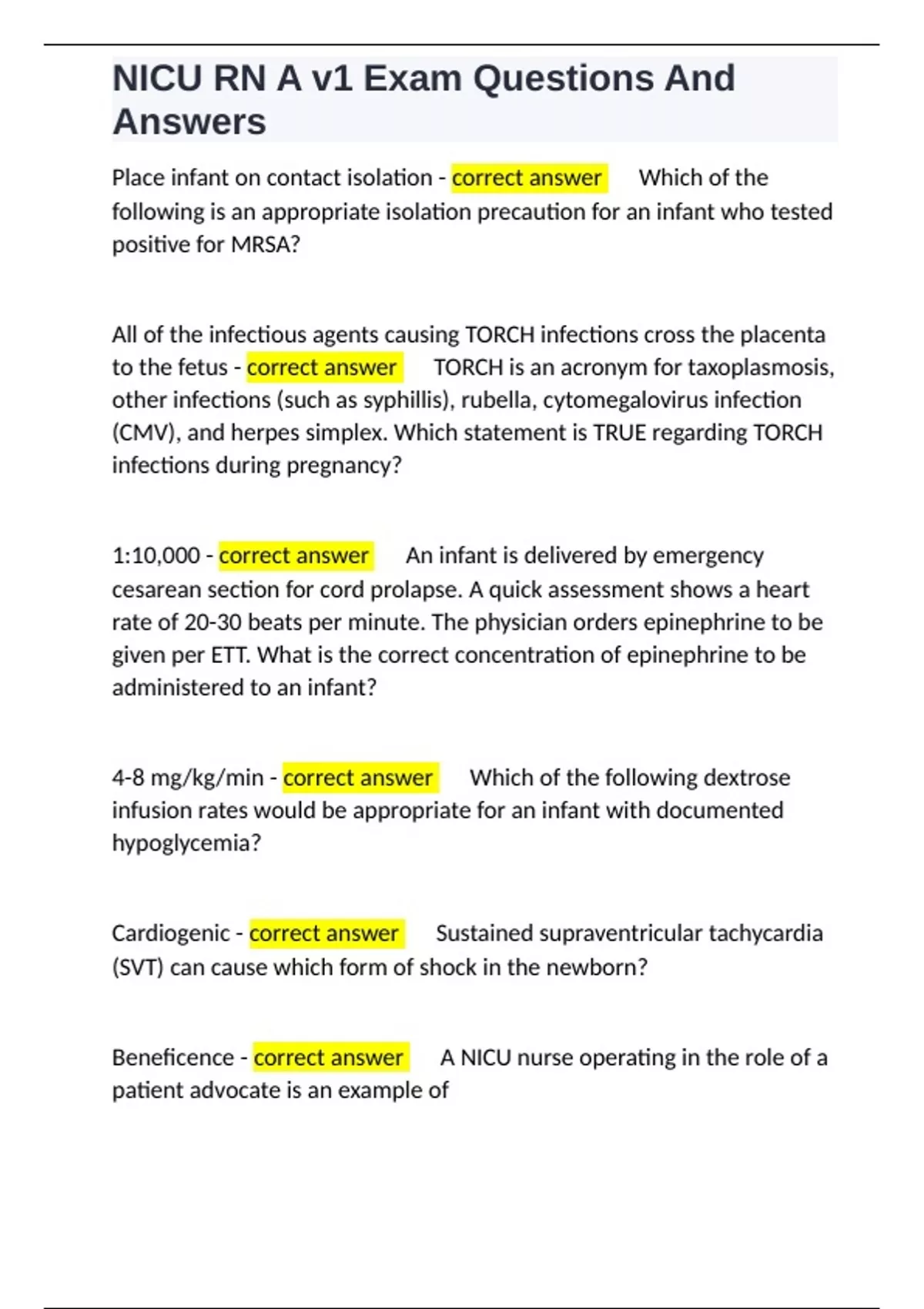 Cardiogenic - correct answer ✅Sustained supraventricular tachycardia