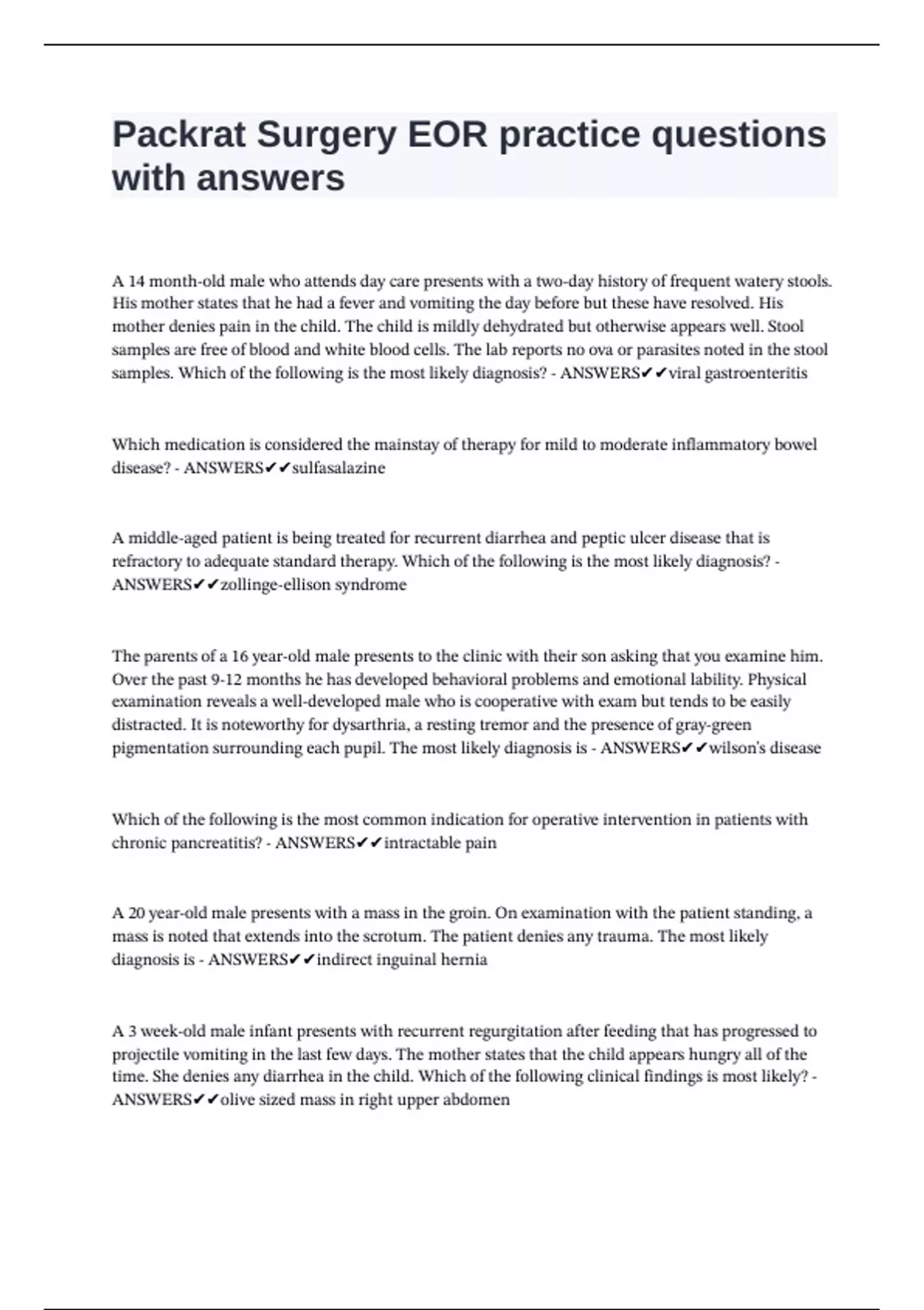 ANSWERS✔✔zollinge-ellison |syndrome