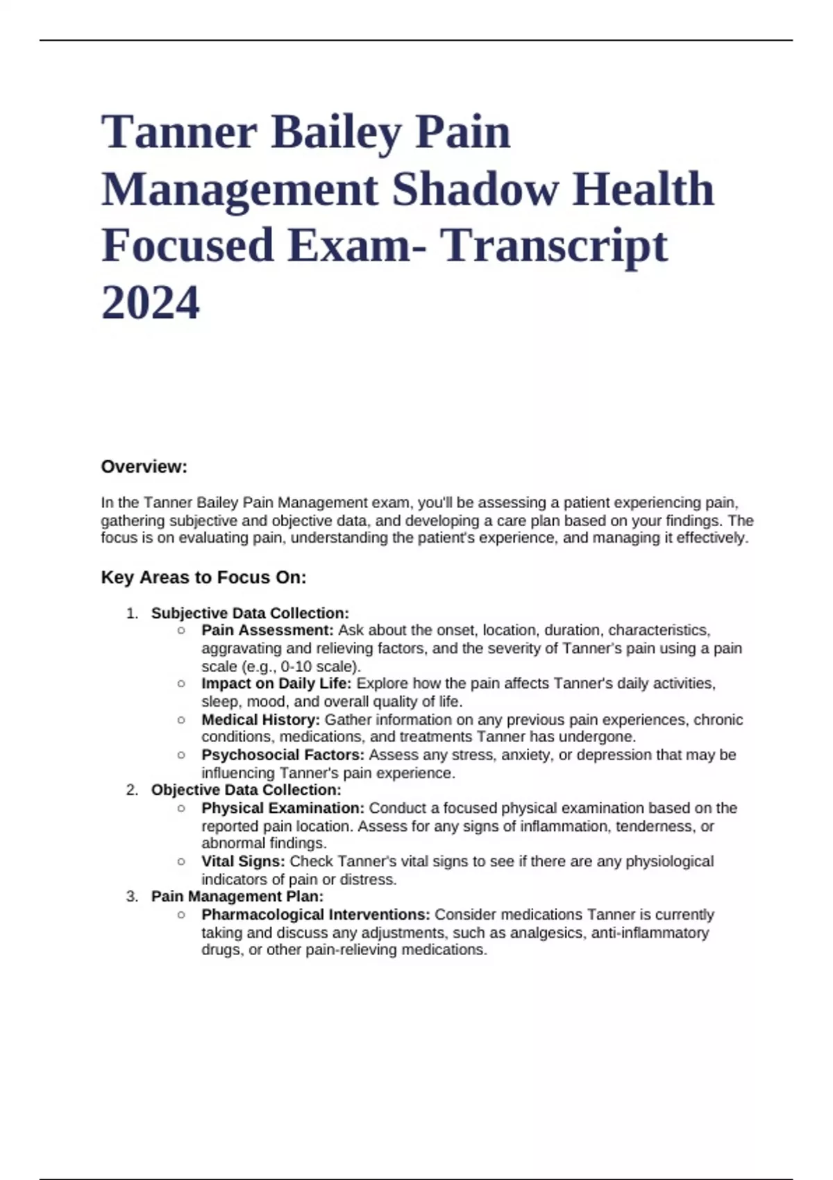 In the Tanner Bailey Pain Management exam, you'll be assessing a patient experiencing pain,