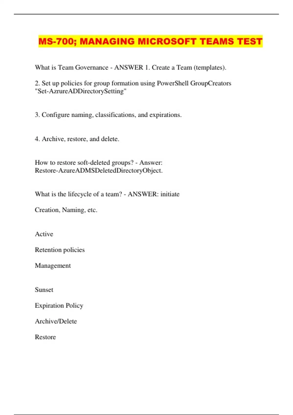 MS-700; MANAGING MICROSOFT TEAMS TEST