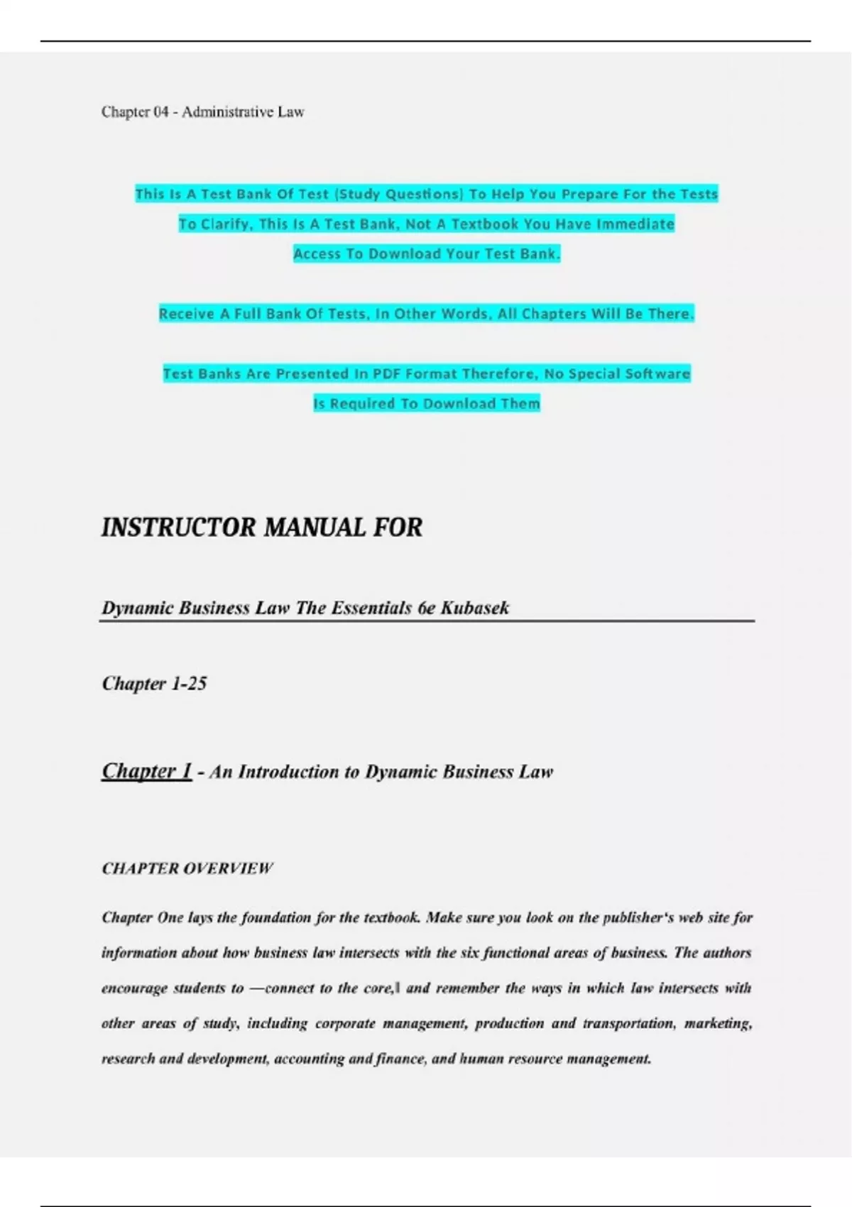 Dynamic Business Law: The Essentials, 5th Edition SOLUTION MANUAL by Kubasek, Browne, Herron, Verified Chapters 1 - 25, Complete Newest Version