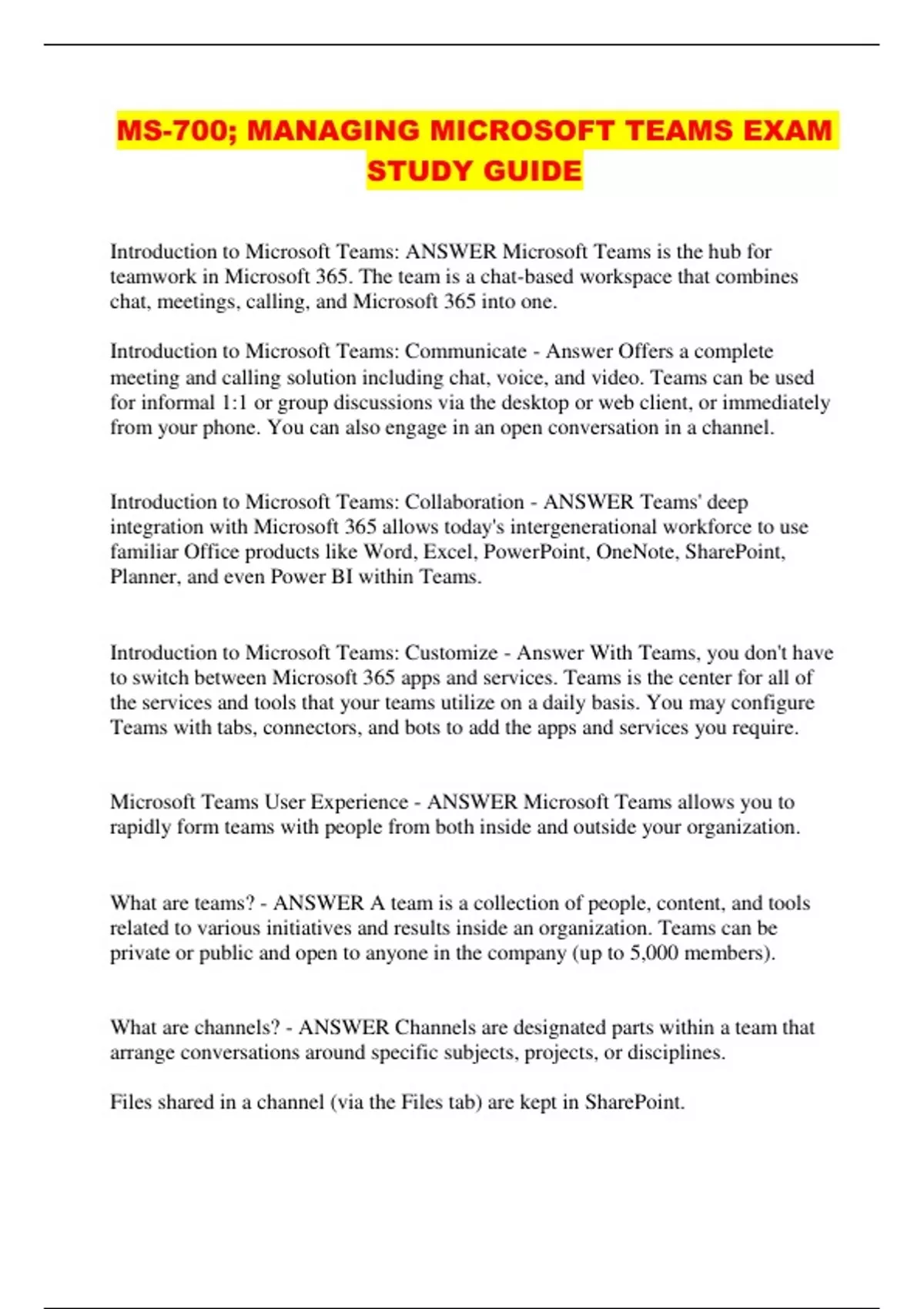 Introduction to Microsoft Teams: Communicate - Answer Offers a complete