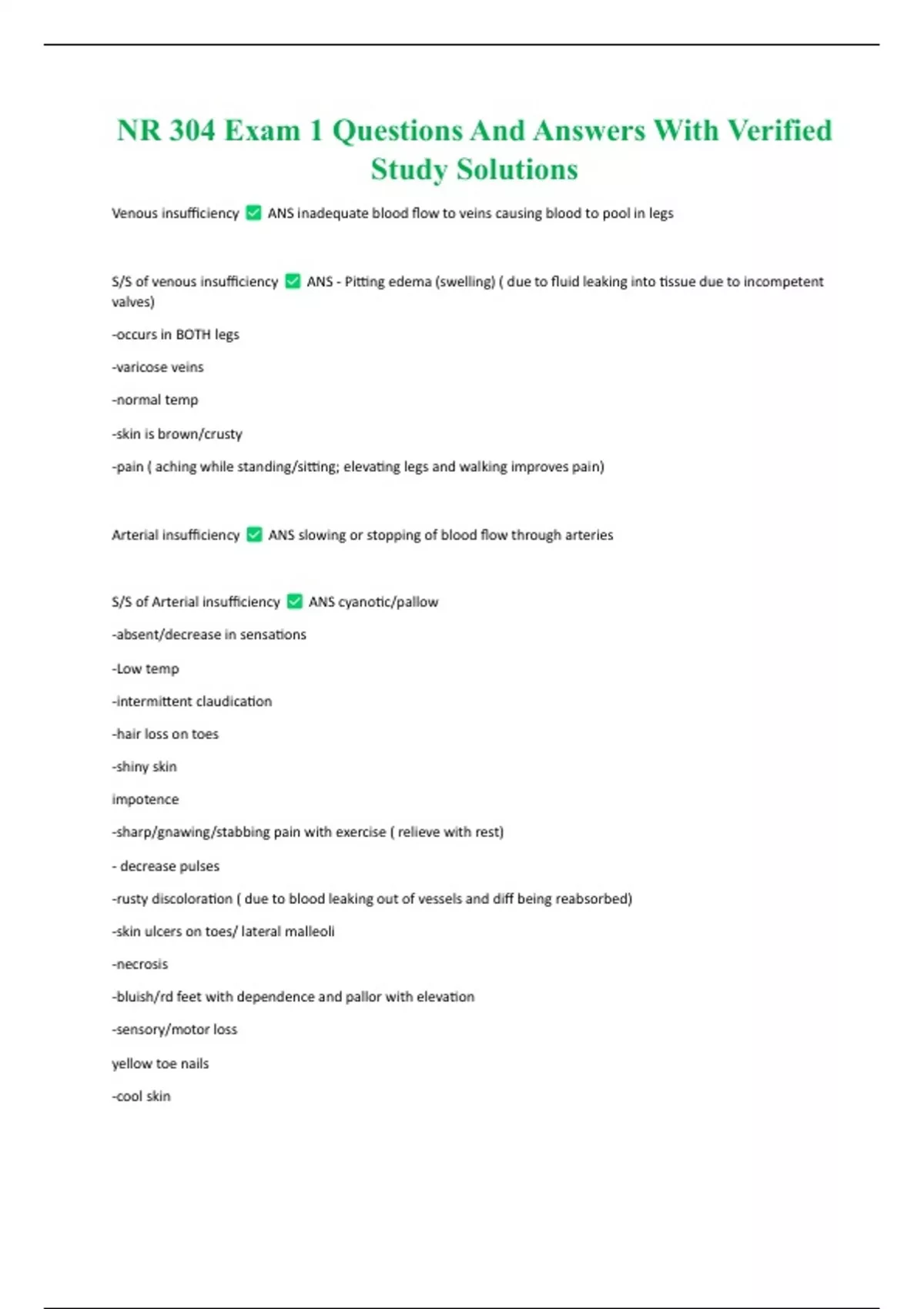 Venous insufficiency ANS inadequate blood flow to veins causing blood to pool in legs