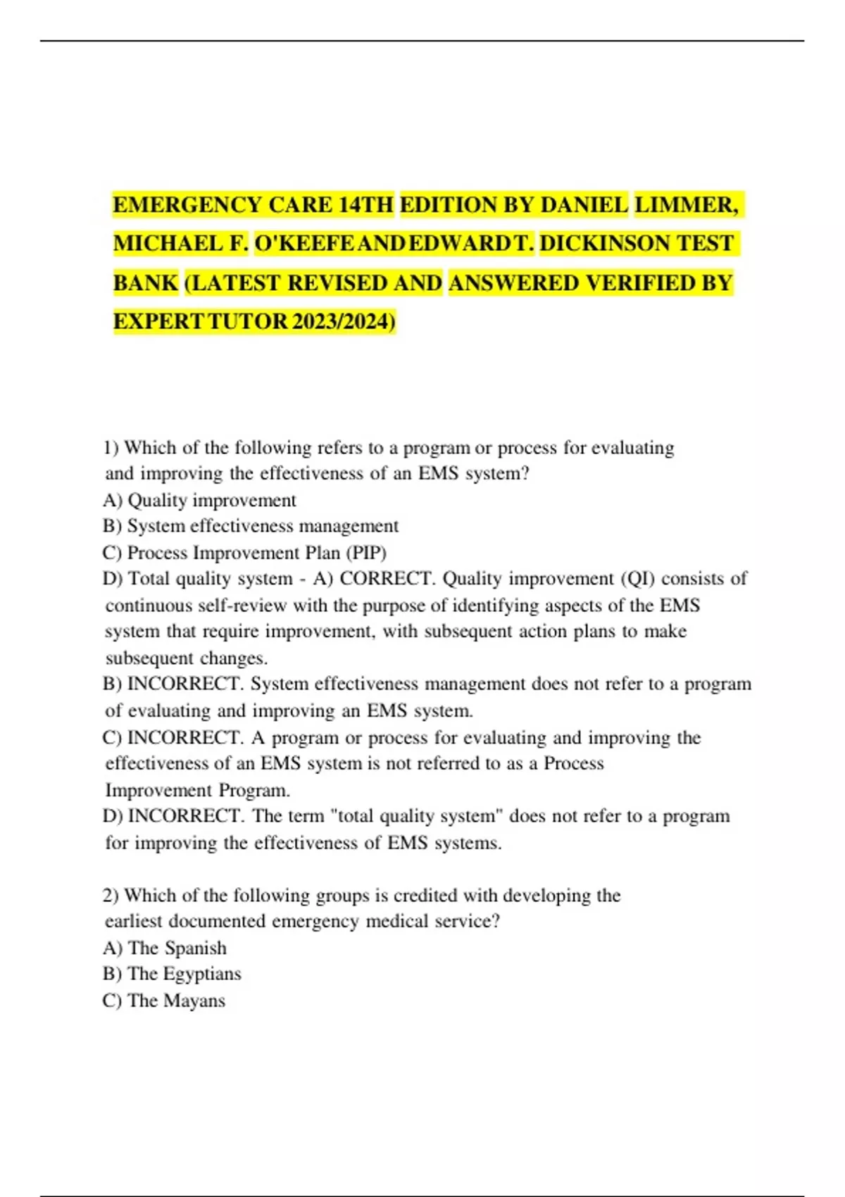 Test Bank For Emergency Care 14th Edition by Daniel Limmer, Michael F. O'Keefe and Edward T. Dickinson Latest 2024 Updated Edition Test Bank For Emergency Care 14th Edition by Daniel Limmer, Michael F. O'Keefe and Edward T. Dickinson Latest 2024 Updated Edition Test Bank For Emergency Care 14th Edition by Daniel Limmer, Michael F. O'Keefe and Edward T. Dickinson Latest 2024 Updated Edition Test Bank For Emergency Care 14th Edition by Daniel Limmer, Michael F. O'Keefe and Edward T. Dickinson Latest 2024 Updated Edition
