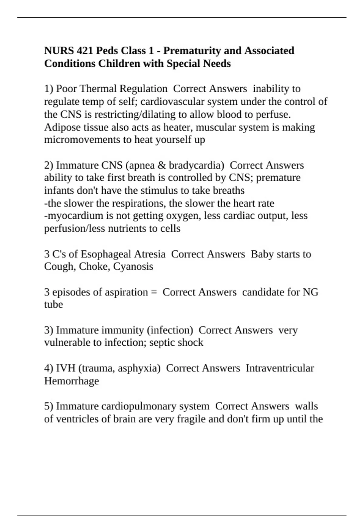 NURS 421 Peds Class 1 - Prematurity and Associated Conditions Children with Special Needs