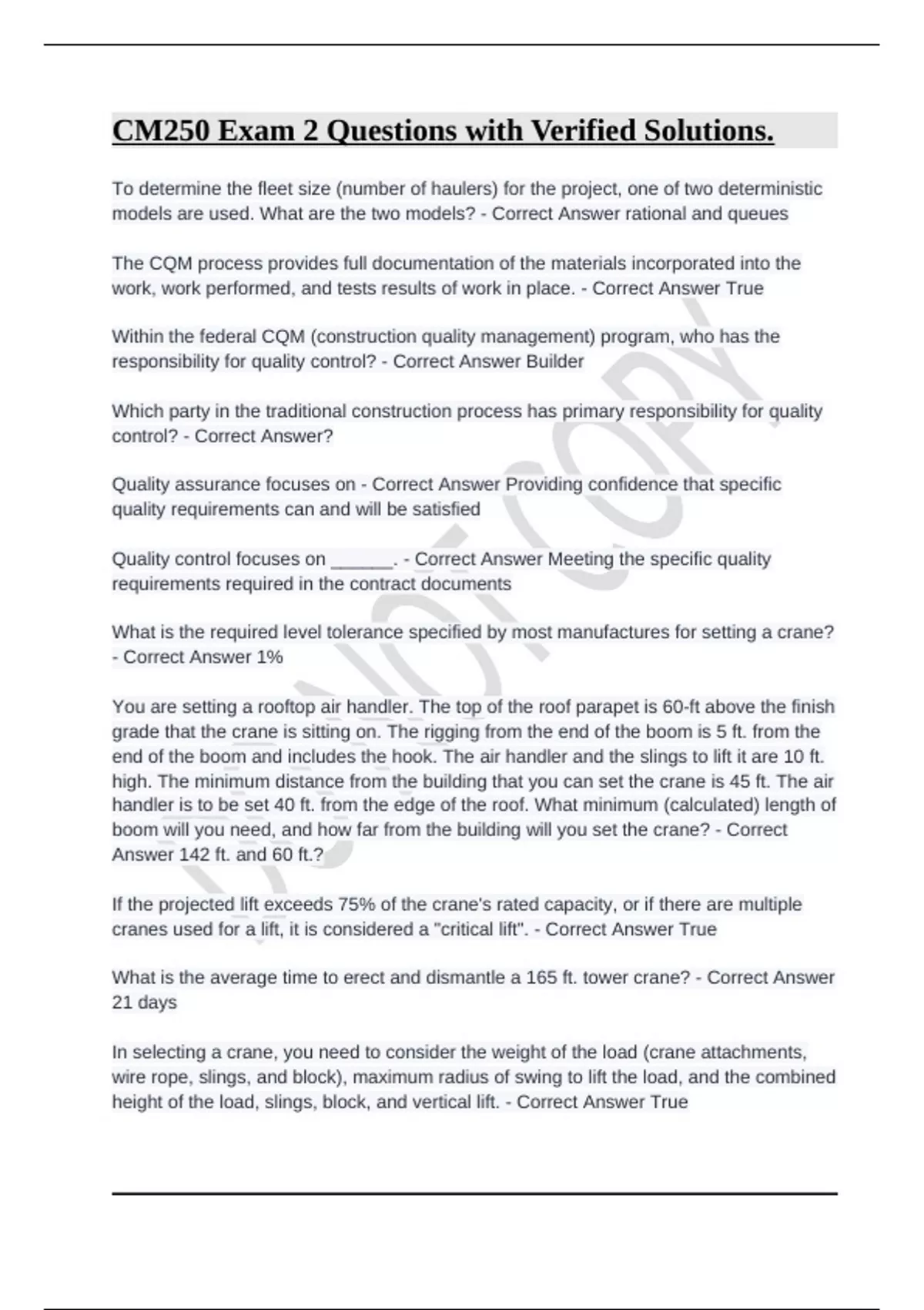 cranes used for a lift, it is considered a "critical lift". - Correct Answer True