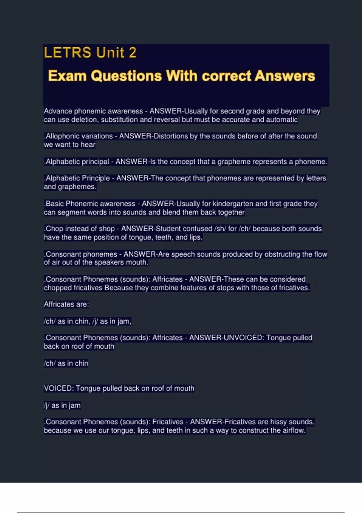 .Consonant phonemes - ANSWER-Are speech sounds produced by obstructing the flow