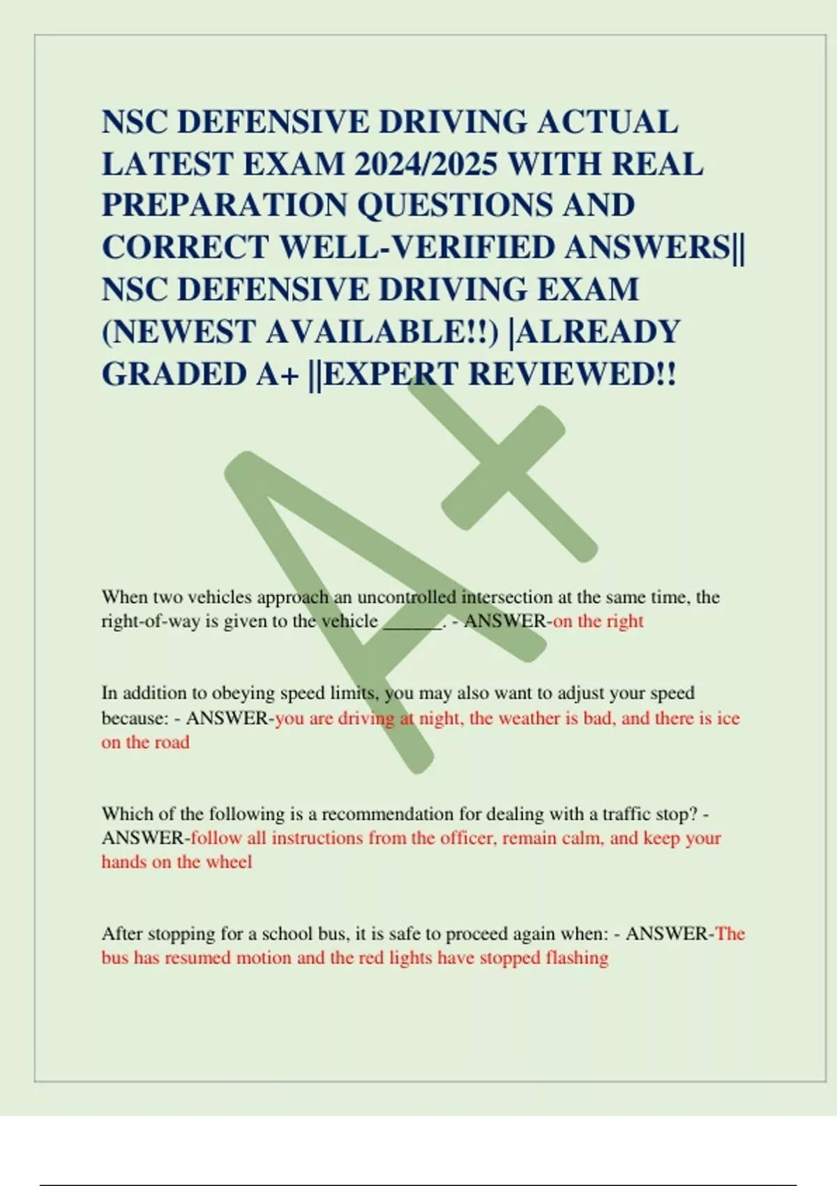NSC DEFENSIVE DRIVING EXAM
