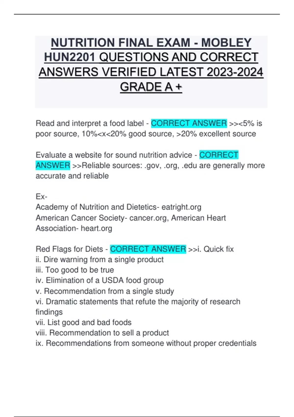 Evaluate a website for sound nutrition advice - CORRECT