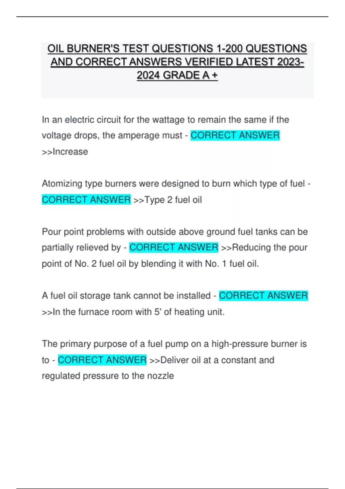 CORRECT ANSWER >>Type 2 fuel oil