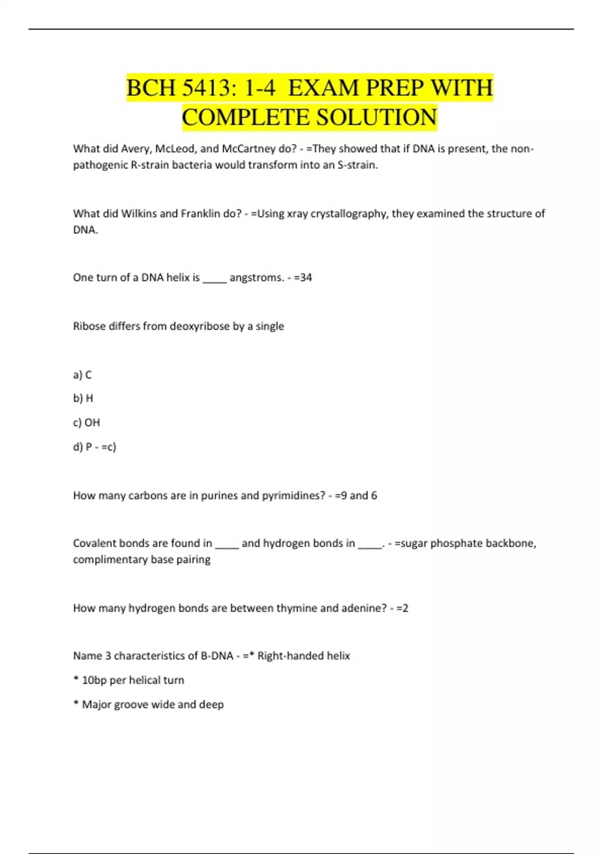 BCH 5413: 1-4 EXAM PREP WITH COMPLETE SOLUTION
